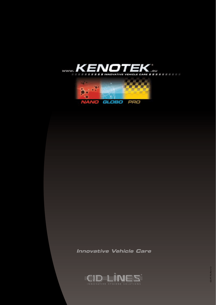 ES-PT-PL-RU v1.0 Innovative Innovative Vehicle Vehicle Care Care ES CID LINES es fabricante y proveedor a nivel mundial de una completa gama de productos de limpieza, cuidado y desinfección para el transporte e industrias agropecuarias y alimentarias. En nuestros laboratorios profesionales, ingenieros y químicos especializados trabajan para un continuo desarrollo de productos y soluciones a la medida de sus necesidades específicas de higiene. Para ello, en todos los procesos se aplican las más estrictas normas de calidad – como ISO 9001:2000 o GMP-farma -. Desde sus comienzos en 1988, CID LINES ha experimentado un espectacular crecimiento, abriéndose, durante ese tiempo, filiales en Francia, Polonia y España. CID LINES exporta actualmente sus productos a más de 70 países y a todos los continentes. Este reconocimiento a nivel mundial es también su garantía de calidad y rentabilidad. n PT CID LINES é fabricante e fornecedor a nível mundial de uma gama completa de detergentes e desinfectantes para transportes e veículos, indústrias agro-alimentares e agro-pecuárias. Os nossos químicos e engenheiros especializados trabalham e pesquisam nos nossos laboratórios para uma melhoria contínua dos nossos produtos e soluções à medida das suas necessidades específicas. Em todos os processos, normas estritas de controlo de qualidade - como a certificação de produção ISO 9001:2000 e GMP-Pharma - são aplicadas. n PL CID LINES jest producentem i dostawcą kompleksowych linii środków myjących, dezynfekujących i pielęgnujących do przemysłu spożywczego, rolniczego i transportowego. Wykwalifikowani chemicy i inżynierowie pracują w naszych profesjonalnych laboratoriach i nieustannie udoskonalają nasze produkty, które są dostosowywane do potrzeb odbiorców. Dlatego spełniamy najwyższe normy jakości jak ISO 9001:2000 oraz GMP-Pharma. Od powstania firmy, tj. od 1988 roku, firma CID LINES nieustannie się rozwija. Otworzyliśmy swoje oddziały we Francji i w Polsce. CID LINES eksportuje swoje produkty do ponad 70 krajów na całym świecie. Nasza marka jest rozpoznawana na wszystkich kontynentach i fakt ten jest gwarancją jakości naszych produktów i zysku. n RU CID LINES является производителем и поставщиком широкого спетра продукции для глубокой очистки, ухода и дезинфекции для транспортной, пищевой и сельскохозяйственной промышленности. Для постоянного улучшения качества продукции, изготовленной именно для ваших нужд по уборке, в наших профессиональных лабораториях работают отлично обученные химики и инженеры. Компания CID LINES стремительно развивается с момента начала своей деятельности в 1988 году. Тем временем, во Франции, Польше и Испании были открыты дочерние компании. CID LINES поставляет свою продукцию в более 70 стран на всех континентах. Это всемирное признание также является гарантией качества и результата. 2 4 6 • prelavado / pré-lavagem / mycie wstępne / П редварительная мойка ......... 6 detergentes alcalinos - detergentes alcalinos - preparaty zasadowe - Щелочные моющие средства ................... 6 ácidos - ácidos - preparaty kwaśne - Кислотные моющие средства ........................................................................................................... 8 • lavado / lavagem / mycie zasadnicze / М ойка ........................................................................................ 10 productos neutros - produtos neutros - preparaty neutralne - Нейтральные моющие средства .................................... 10 ácidos - ácidos - preparaty kwaśne - Кислотные моющие средства ..........................................................................................................11 • agentes secantes y ceras / secantes (hidrofobantes) e ceras woskowanie i osuszanie / В ысушивающие средства и воски .......................... 12 agentes secantes - agentes de secagem (hidrofobantes) - preparaty woskujące - Высушивающие средства . . 12 ceras - ceras - preparaty suszące - Воски ......................................................................................................................................................................... 13 14 • tratamiento del agua / tratamento de água recykling wody / П одготовка воды reciclado de agua - reciclagem de água - preparaty do recyklingu wody - Переработка воды ............................. 14 • productos diversos / produtos diversos dodatkowe produkty / Разное garaje e industrias - garagem e indústrias - preparaty dla serwisów i warsztatów - гаражей и промышленности .16 19 LIN ID VE HYG S TI VA • Д ля получения информации о наличии продукции свяжитесь с вашим дистрибьютором . INNO • Aby uz ysk ać więcej informac ji S prawdź dostępność produk tów, pros zę skontak tować się z dys trybutorem. ISO 9001 GMP S • Para mais informação acerca da disponibilidade de produtos, por favor contacte o seu dis tribuidor. E • Para más información sobre l a disponibilidad de otros productos, consulte a su dis tribuidor. TI ON ..............................................................................................................