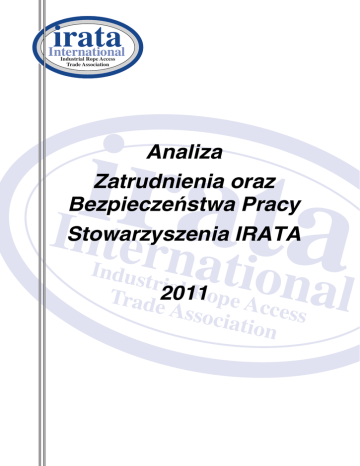 irata International Industrial Rope Access Trade Association iIntrernata Analiza Zatrudnienia oraz Bezpieczeństwa Pracy Stowarzyszenia IRATA ation al Indus trial R Trade2011ope A ccess Assoc iation Analiza Zatrudnienia oraz Bezpieczeństwa Pracy Stowarzyszenia IRATA 2011 Dr C H Robbins Podsumowanie Liczba członków Stowarzyszenia na całym świecie wzrosła do 217, a liczbę pracowników szacuje się na ponad 10 000 na koniec 2011 roku. Liczba godzin roboczych przekroczyła 10 500 000, z czego połowa została wypracowana „na linie“. Odnotowano 65 przypadków urazów i chorób, z których 19 wymagało powyŜej trzech dni wolnych od pracy. Z przykrością odnotowano jeden przypadek śmiertelny. NajwyŜsza podatność na urazy miała miejsce na stałym gruncie, gdzie częstotliwość wypadków była trzykrotnie wyŜsza niŜ ich częstotliwość podczas pracy „na linie“, lub podczas szkoleń. RóŜnice w liczbie wypadków pomiędzy trzema poziomami pracowników były nieznaczne. Wskaźnik urazów i chorób wynosił 203 na 100 000 pracowników. Jest to niewielki procent (6 - 25%) przeciętnych wskaźników opublikowanych dla Wielkiej Brytanii, Unii Europejskiej oraz Stanów Zjednoczonych. Wypadek śmiertelny oznacza średnią piecioletnią o wartości 3,1. Dla porówniania, przeciętny wskaźnik w USA w 2010 roku wynosił 3,6, a w Unii Europejskiej w 2008 r. był on równy 2,53, co przekracza wartość wskaźnika w Wielkiej Brytanii, gdzie na rok 2010/2011 wynosił on 0,7 na przestrzeni całego przemysłu. Oprócz tego wyjątku, statystyki BHP za rok 2011 są chlubą członków Stowarzyszenia. Lipiec 2012 @IRATA International Strona 1 z 26 12 lipca 2012 Spis Treści STRONA 3 Spis Rycin 1. WPROWADZENIE 4 2. CZŁONKOWSTWO BRANśOWE IRATA 5 3. STATYSTYKI ZATRUDNIENIA 6 3.1 3.2 3.3 3.4 Poziom zatrudnienia Przepracowane godziny Miernik utylizacji godzin pracy Szkolenia 6 7 9 9 4. STATYSTYKI DOTYCZĄCE WYPADKÓW 4.1 4.2 4.3 4.4 4.5 4.6 4.7 4.8 4.9 4.10 10 Liczba złoŜonych raportów Nazewnictwo Konsekwencje wypadku/incydentu Lokalizacja wypadku/incydentu Wypadki wg poziomu zatrudnienia Urazy części ciała Przyczyny wypadków/incydentów Stracony czas pracy Inne czynniki Praca na linach 10 11 11 12 13 15 16 17 18 18 5. PORÓWNANIE DANYCH DOTYCZĄCYCH WYPADKÓW 5.1 5.2 19 Podstawa porównania Porównanie z danymi z Wielkiej Brytnii, UE i USA 19 19 6. PODSUMOWANIE I WNIOSKI 22 7. ZALECENIA 23 ANEKSY TABELA 1 WSKAŹNIK WYPADKÓW - PRACA „NA LINIE“ 25 TABELA 2 PODSUMOWANIE ZATRUDNIENIA WG POZIOMU – 2011 26 TABELA 3 DANE ZBIORCZE O GODZINACH ROBOCZYCH 26 @IRATA International Strona 2 z 26 12 lipca 2012 Spis Rycin Fig.1 Liczba członków Fig.2 Zatrudnienie kwartalne Fig.3 Przeciętne zatrudnienie wg poziomu Fig.4 Suma przepracowanych godzin Fig 5 Godziny pracy wg sytuacji Fig.6 Godziny pracy na lądzie i poza lądem Fig.7 Konsekwencje wypadków/incydentów Fig.8 Lokalizacja wypadków/incydentów Fig.9 Suma wypadków wg poziomu pracowników Fig.10 Kategorie urazów wg poziomu Fig.11 Urazy części ciała Fig.12 Przyczyny wypadków/incydentów Fig.13 Wskaźnik wszystkich wypadków „na linie“ IRATA Kingsley House Ganders Business Park Kingsley, Bordon Hampshire GU35 9LU UK www.irata.org @IRATA International Strona 3 z 26 12 lipca 2012 1. WPROWADZENIE Niniejszy raport podsumowuje dane dotyczące zatrudnienia oraz wypadków/incydentów przekazane Stowarzyszeniu IRATA (BranŜowe Stowarzyszenie Przemysłowego Dostępu Linowego) przez firmy członkowskie w okresie od stycznia do grudnia 2011 r. Członkowie przekazali IRATA dwa rodzaje raportów: • Dane kwartalne dotyczące zatrudnienia, włącznie z godzinami pracy oraz • Szczegółowe informacje dotyczące konkretnych incydentów lub wypadków, włącznie z niebezpiecznymi zdarzeniami i zachorowaniami. Oba zestawy danych są niezbędne w celu wyliczenia wskaźników wypadków/incydentów. Aby uprościć proces przekazywania danych przez członków stowarzyszenia dokonano zmian odnośnie wymaganych danych w porównaniu z poprzednimi latami. PoniŜej znajduje się podsumowanie niektórych z najistotnieszych zmian: Oddzielne dane na temat podwykonawców oraz pracowników nienaleŜących do IRATA nie są juŜ wymagane (ale są wliczone do danych dotyczących zatrudnienia, jeśli nie zostały przedstawione oddzielnie, np. przez podwykonawców IRATA). Szkolenie zostało wyodrębnione, zarówno w przypadku pracowników, a takŜe obejmując godziny spędzone na szkoleniu i ocenie. Dotyczy to zarówno instruktorów, jak i oceniających. Czas spędzony w danym miejscu, na „bezpiecznym gruncie“ nie jest juŜ oddzielnie rozpatrywany i został włączony do kategorii „inne“miejsca. Znaczenie tych zmian stanie się oczywiste w treści raportu, aczkolwiek najbardziej oczywista zmiana dotyczy faktu, Ŝe porównania z latami poprzednimi nie będą zawsze moŜliwe w wyniku tych zmian. Oprócz tego, poziom pewności dotyczący danych odnoszących się do zatrudnienia oraz godzin pracy obniŜył się wraz z wprowadzeniem zmian. Przedstawione przez członków dane zostały poddane kontroli jakości przed przeprowadzeniem analizy. ToŜsamość firm członkowskich podających dane pozostaje anonimowa dla analityka. W raporcie pojawiają się następujące słowa i frazy, które w kontekście tego raportu mają następujące znaczenie: • ‘Na linie‘ – organizowanie, stosowanie i bezpośrednie zaangaŜowanie w pracę wymagającą dostępu linowego. Dotyczy to teŜ czynności związanych z dojściem oraz wyjściem do/z miejsca, gdzie wykonywana jest praca na linie. NaleŜy zwrócić uwagę na fakt, Ŝe niekoniecznie oznacza to, Ŝe osoba jest podniesiona na wysokość na linach, bądź teŜ fizycznie przypięta do aktywnych lin. • ‘Poza liną‘ – odnosi się do pracy na wysokości, która nie wymaga dostępu linowego, np. na rusztowaniach, dachach, zapewniania @IRATA International Strona 4 z 26 12 lipca 2012 „zdalnego“ wsparcia zespo