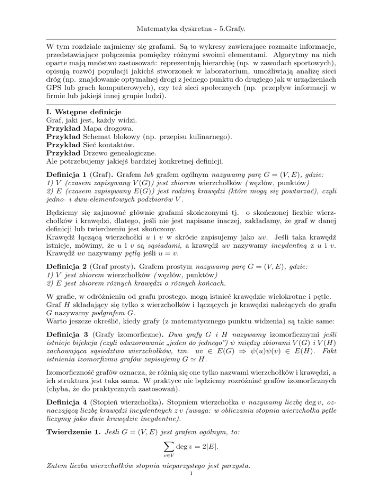 Matematyka dyskretna - 5.Grafy. W tym rozdziale zajmiemy się