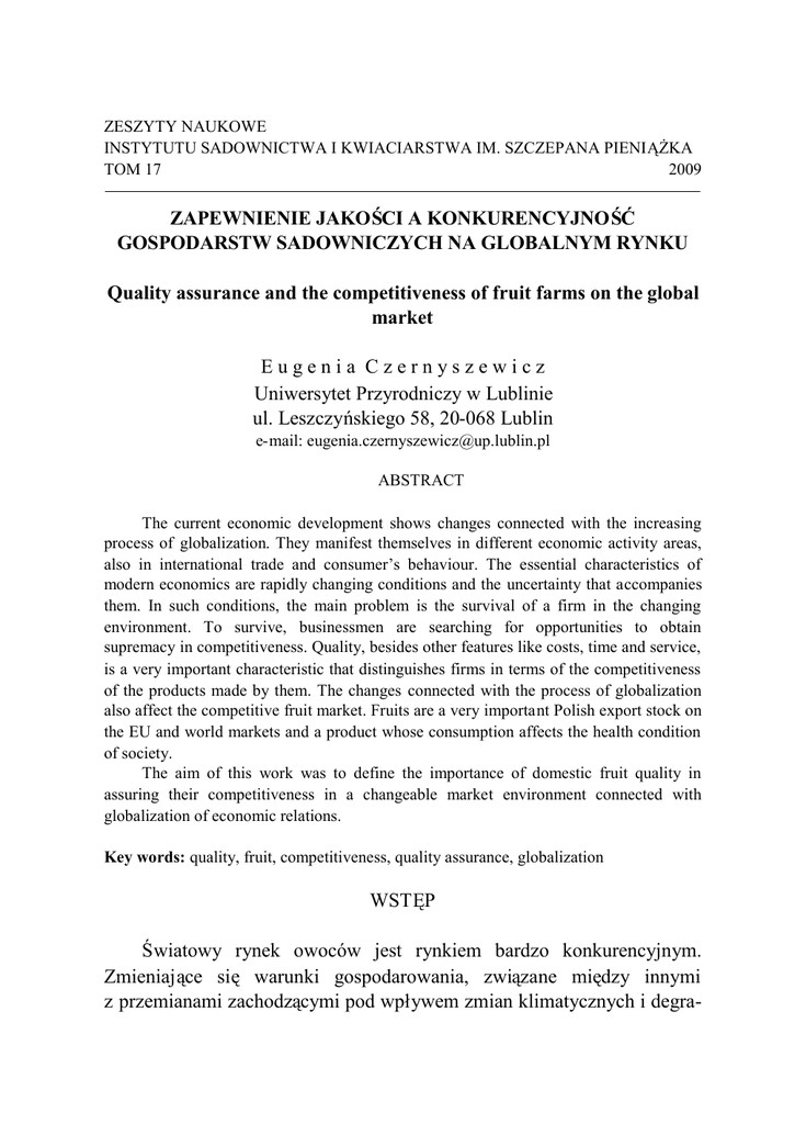 Zapewnienie jakości a konkurencyjność gospodarstw sadowniczych