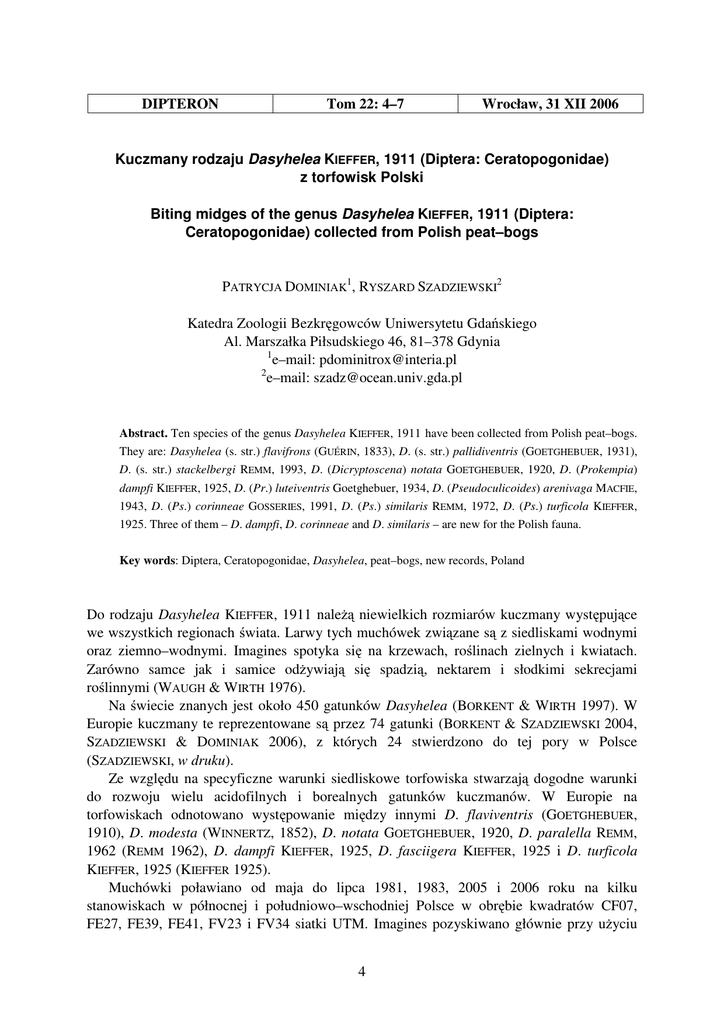 4 DIPTERON Tom 22: 4–7 Wrocław, 31 XII 2006 Kuczmany rodzaju