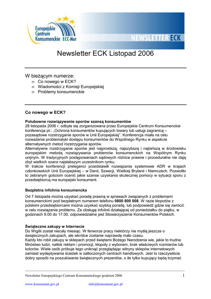 Newsletter ECK Listopad 2006 - Europejskie Centrum Konsumenckie
