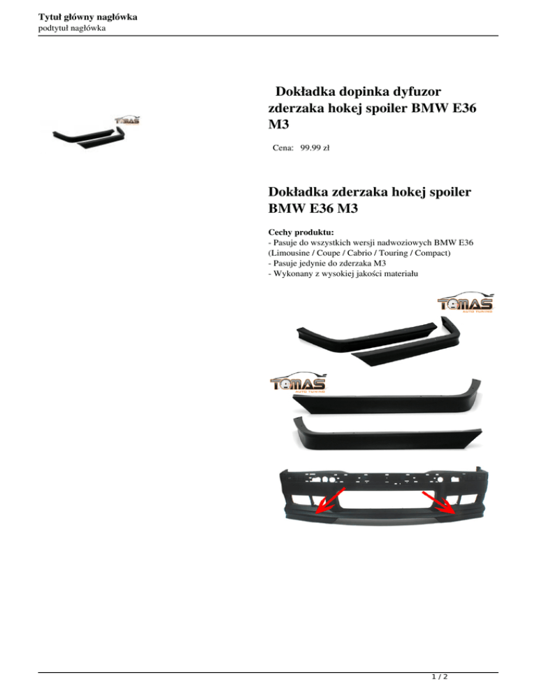 Tytuł główny nagłówka podtytuł nagłówka Dokładka dopinka dyfuzor zderzaka hokej spoiler BMW E36 M3 Cena: 99.99 zł Dokładka zderzaka hokej spoiler BMW E36 M3 Cechy produktu: - Pasuje do wszystkich wersji nadwoziowych BMW E36 (Limousine / Coupe / Cabrio / Touring / Compact) - Pasuje jedynie do zderzaka M3 - Wykonany z wysokiej jakości materiału 1/2 Tytuł główny nagłówka podtytuł nagłówka 2/2 Powered by TCPDF (www.tcpdf.org)