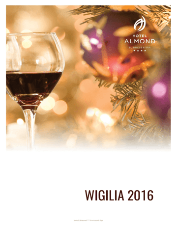 WIGILIA 2016 Propozycja I Bufet Zupa Bulion z grzybami i marchewką Dania główne Pierogi z dorszem i ziemniakami Krokiety z kapustą i grzybami Pulpety z łososia w sosie prowansalskim Noga z kurczaka faszerowana warzywami i szpinakiem w sosie grzybowym Dodatki Marchewka duszona Surówka z białej kapusty Surówka z kiszonej kapusty Frytki z pietruszki Talarki ziemniaczane Deser Sernik Sernik na zimno z galaretką Makowiec Cena: 65 PLN/osoba Propozycja II Bufet Przystawki Łosoś w galarecie aromatyzowany cytryną Karp po żydowsku z rodzynkami i orzechami Pasztet z dziczyzny w cieście francuskim Zupa Zupa rybna Dania główne na półmiskach Pierogi z kapustą i grzybami Kotlety mielone z dorsza na duszonej kapuście Udko z kurczaka faszerowane suszonymi pomidorami Dodatki Czerwona kapusta zasmażana Surówka z kiszonej kapusty Kasza gryczana Ryż z warzywami Deser Sernik Placek z jabłkami Makowiec Cena: 80 PLN/osoba Propozycja III Bufet Przystawki/sałatki Tradycyjna sałatka jarzynowa otoczona pieczoną wieprzowiną z galaretką Sałatka śledziowa z burakami Ryby w zalewie octowej z korzennymi warzywami Pasta z ryb wędzonych z jajkiem i kiszonym ogórkiem Rolada z łososia faszerowana szpinakiem Pasztet z grzybami w cieście francuskim Masło, pieczywo Dania główne Pierś z kaczki confit Fileciki z sandacza na duszonej kapuście z grzybami Fileciki z pstrąga w sosie z homara Dodatki Warzywa gotowane Ziemniaki tłuczone z masłem i śmietaną Ziemniaki opiekane z pietruszką Deser Ciasto makowe Ciasto cytrynowe Naleśniki w pomarańczach Cena: 95 PLN/osoba Propozycja IV Menu serwowane + bufet Przystawka: Jajko plastyczne panierowane w panko serwowane na grillowanych warzywach z pesto paprykowo-pietruszkowym Zupa: Barszcz z pierożkami nadziewanymi kapustą i borowikami Danie główne: Troć z grilla z warzywami i zapiekanką ziemniaczaną na sosie homarowym Deser: Cynamonowy placek z jabłkami Zimna płyta po obiedzie serwowanym w formie bufetu: Dorsz w pomidorach z czosnkiem Śledź na trzy sposoby Ryby w galarecie Rolada z kaczki Pasztet z dzika Kapusta z grzybami i grochem Mix chrupiących sałat Sos tatarski z jajkiem Pieczywo, masło Bufet deserowy: Makowiec Sernik królewski Kluski z makiem i rodzynkami Naleśniki w pomarańczach Cena: 160 PLN/osoba Propozycja V Menu serwowane + bufet Przystawka serwowana Rolada z sandacza z glonami nori i szyjkami rakowymi podawana na listkach rukoli Zupa serwowana Aromtyczna zupa z borowików z domowymi łazankami Dania główne Grillowany łosoś i filet z karpia w sosie ziołowym z ziemniakami gratin i zieloną fasolką szparagową Deser Ciasto makowe z wiśniami i lodami waniliowymi Dania serwowane w stoły Ryby po grecku Ryby w galarecie cytrynowej Staropolska kapusta z suszonymi grzybami Śledzik na 3 sposoby Mix sałat Pierogi zasmażane z kapustą i grzybami Kompot z suszu Pieczywo, Masło Bufet deserowy Makowiec Piernik mazurski Sernik królewski Kluski z makiem i rodzynkami Cena: 160 PLN/osoba Menu napoje bezalkoholowe Kawa, herbata, woda Jednorazowo: 10 pln brutto/osoba Uzupełniane: 17 pln brutto/osoba Kawa, herbata, woda, soki Jednorazowo: 15 pln brutto/osoba Uzupełniane : 24 pln brutto/osoba Kawa, herbata, woda, napoje gazowane Jednorazowo: 15 pln brutto/osoba Uzupełniane: 28 pln brutto/osoba Kawa, herbata, woda, napoje gazowane, soki Jednorazowo: 17 pln brutto/osoba Uzupełniane: 32 pln brutto/osoba Menu napoje alkoholowe Wybór alkoholi: piwo do 4 h -30 pln/osoba do 8h- 60 zł/osoba Wybór alkoholi: piwo, wino białe i czerwone do 4 h - 45 pln/osoba do 8h- 75 pln/osoba Wybór alkoholi: piwo, wino białe i czerwone, wódka Napoje bezalkoholowe: kawa, wybór herbat, woda mineralna, soki, napoje gazowane do 4 h - 80 pln/osoba do 8h- 120 pln/osoba Wybór alkoholi: piwo, wino białe i czerwone, wódka, whisky Napoje bezalkoholowe: kawa, wybór herbat, woda mineralna, soki, napoje gazowane do 4 h – 110 pln/osoba do 8h- 190 pln/osoba
