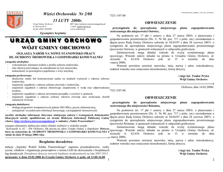 Wieści Orchowskie Nr 2/08 15 LUTY 2008r.