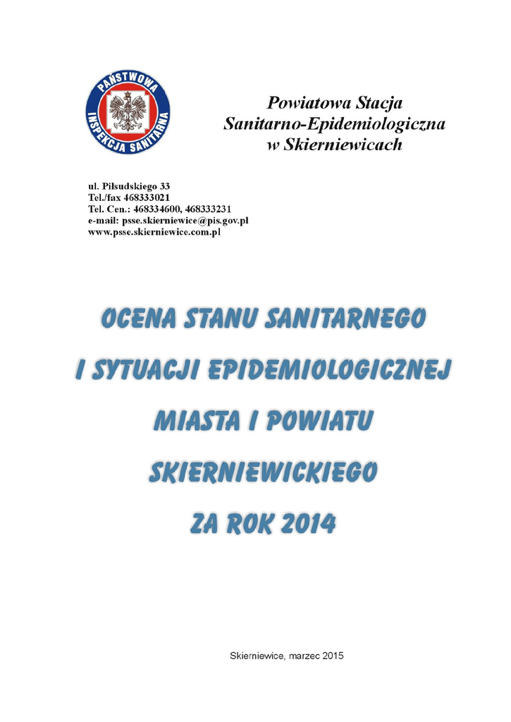 ─ 3 ─ Spis treści I. Wstęp ................................................................................................................................................................ 4 II. Sytuacja epidemiologiczna chorób zakaźnych ................................................................................ 7 III. Stan sanitarny podmiotów leczniczych......................................................................................... 21 IV. Warunki higieny środowiska ............................................................................................................ 33 V. Higiena żywności i żywienia ............................................................................................................... 41 VI. Stan sanitarny środowiska pracy .................................................................................................... 57 VII. Higiena dzieci i młodzieży................................................................................................................. 63 VIII. Zapobiegawczy nadzór sanitarny ................................................................................................. 71 IX. Oświata zdrowotna i promocja zdrowia ....................................................................................... 77 X. Działalność pionu laboratoryjnego ................................................................................................... 83 ─ 4 ─ I. WSTĘP Państwowa Inspekcja Sanitarna na mocy ustawy z dnia 14 marca 1985r. (Dz. U. z 2011r . Nr 212, poz. 1263 z późn. zm.) jest powołana do realizacji zadań z zakresu zdrowia publicznego, w szczególności poprzez sprawowanie nadzoru nad warunkami: 1) higieny środowiska, 2) higieny pracy w zakładach pracy, 3) higieny procesów nauczania i wychowania, 4) higieny wypoczynku i rekreacji, 5) zdrowotnymi żywności, żywienia i przedmiotów użytku, 6) higieniczno-sanitarnymi, jakie powinien spełniać personel medyczny, sprzęt oraz pomieszczenia, w których są udzielane świadczenia zdrowotne, w celu ochrony zdrowia ludzkiego przed niekorzystnym wpływem szkodliwości i uciążliwości środowiskowych, zapobiegania powstawaniu chorób, w tym chorób zakaźnych i zawodowych. Państwowy Powiatowy Inspektor Sanitarny w Skierniewicach realizuje zadania przy pomocy podległej mu Powiatowej Stacji Sanitarno-Epidemiologicznej w Skierniewicach, która jest jednostką budżetową będącą podmiotem leczniczym, finansowanym z budżetu państwa (art. 15 ust. 1. w/w ustawy z dnia 14 marca 1985 r. o Państwowej Inspekcji Sanitarnej). Wdrożony Zarządzeniem Nr 8/2014 Dyrektora PSSE w Skierniewicach oraz Nr 2/2014 Państwowego Wojewódzkiego Inspektora Sanitarnego w Łodzi z dnia 17 marca 2014. system zarządzania w działalności kontrolnej PIS woj. łódzkiego, zgodnie z PN-EN ISO/IEC 17020:2012 ,,Ocena zgodności - Wymagania dotyczące działania różnych rodzajów jednostek przeprowadzających inspekcję”, zapewnia jednolity sposób wykonywania czynności kontrolnych przez pracowników Państwowej Inspekcji Sanitarnej woj. łódzkiego. System zarzadzania wsparty jest procederami kontrolnymi przekazanymi przez Głównego Inspektora Sanitarnego do stosowania, jednolitymi na obszarze całego kraju. Oprócz działalności kontrolnej powiatowego inspektora w PSSE w Skierniewicach prowadzone są badania i analizy laboratoryjne. Oddział Laboratoryjny PSSE posiada akredytację Polskiego Centrum Akredytacji Nr AB 540. Laboratorium wykonuje badania próbek pobranych w ramach czynności kontrolnych z obszaru żywności i żywienia, wody, środowiska pracy i zamieszkania oraz wykonuje analizy materiału biologicznego pobranego od ludzi. Laboratorium działa w ramach zintegrowanej bazy laboratoryjnej Województwa ─ 5 ─ Łódzkiego i część oznaczanych prób pochodzi z innych powiatów. Posiadanie akredytacji jest potwierdzeniem wdrożenia systemu zarzadzania oraz kompetencji technicznych laboratorium. Zakres terytorialny działania Państwowego Powiatowego Inspektora Sanitarnego w Skierniewicach obejmuje miasto Skierniewice i powiat skierniewicki Zgodnie z przyjętym jesienią 2013r. „ Planem zasadniczych przedsięwzięć PSSE w Skierniewicach na 2014r.” głównym celem działalności PSSE w Skierniewicach minionym roku było: Promowanie zdrowego stylu życia, nadzór nad bezpieczeństwem żywności i żywienia oraz bezpieczeństwem zdrowotnym wody, zapobieganie powstawaniu chorób i zaburzeń zdrowia, w tym chorób zakaźnych i zawodowych poprzez sprawowanie zapobiegawczego i bieżącego nadzoru sanitarnego z zakresu zdrowia publicznego oraz prowadzenie działalności przeciwepidemicznej. Zestawienie działalności kontrolno-represyjnej za 2014r Pion Działalności Nadzór Epidemiologiczny Higiena Środowiska Higiena Żywności, Żywienia i P.U. Higiena Pracy Higiena Dzieci i Młodzieży Zapobiegawczy Nadzór Sanitarny Oświata Zdrowotna RAZEM Liczba przeprowa -dzonych kontroli Liczba decyzji administracyjnych ogółem w tym płatniczych Liczba decyzji o zatwierdzeniu zakładu Liczba Liczba nałożoupomnych nień mandatów karnych Liczba opinii 531 45 19 - - 10 - 548 150 6 - - - 14 656 90 58 99 27 3 - 190 55 24 - - - - 172 16 5 - - 1 2 51 - - - - - 123 19 - - - - - - 2167 356 112 99 27 14 139 ─ 6 ─ Zestawienie działalności w zakresie poboru próbek i wykonywania badań (w tym badań na rzecz innych powiatowych stacji sanitarno-epidemiologicznych) za 2014r. Pion działaności liczba pobranych próbek Liczba wykonanych badań Liczba wykonanych oznaczeń chemicznych Epidemiologia fizycznych mikrobiolo gicznych 388 3164 --- --- 6432 269 2973 4126 5388 3225 289 3440 742 1165 4435 1376 87 41 262 --- Higiena Dzieci i Młodzieży --- 215 --- 215 --- Zapobiegawczy Nadzór Sanitarny --- --- --- --- --- 2322 9879 4909 7030 14092 Higiena Środowiska Higiena Żywności, Żywienia i PU Higiena Pracy RAZEM ─ 7 ─ II. SYTUACJA EPIDEMIOLOGICZNA CHOR