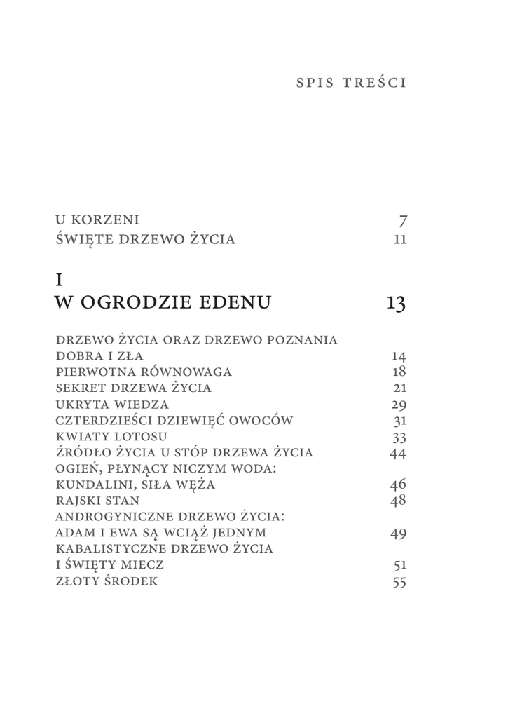 spis tre śc i u korzeni7 święte drzewo życia 11 i w ogrodzie edenu drzewo życia oraz drzewo poznania dobra i zła pierwotna równowaga sekret drzewa życia ukryta wiedza czterdzieści dziewięć owoców kwiaty lotosu źródło życia u stóp drzewa życia ogień, płynący niczym woda: kundalini, siła węża rajski stan androgyniczne drzewo życia: adam i ewa są wciąż jednym kabalistyczne drzewo życia i święty miecz złoty środek 13 14 18 21 29 31 33 44 46 48 49 51 55 ii wąż,drzewo poznania oraz zakazany owoc 57 mądry i chytry wąż 58 drzewo, źródło i wąż lub smok 61 zakazane owoce na drzewie 64 drzewo figowe 68 rozważania74 zło: cienie niewiedzy 76 wyklęcie79 chromy człowiek 80 cherubiny i płomienisty miecz 82 krótka droga do urzeczywistnienia boga: celibat 85 jodła merlina i rajskie drzewo mahometa 89 alchemia i drzewo filozofa 91 przekazana wiedza: zielony wawrzyn 93 iii krzyż i ukrzyżowanie 95 krzyż, starodawny symbol od drzewa życia do krzyża średniowieczna legenda ukrzyżowanie zbawiciela symbolika ukrzyżowania nowe jeruzalem i drzewo życia 96 98 100 102 104 107 przypisy112 literatura113 ryciny115 u korze n i „Niektóre aspekty drzewa jako symbolu życia i śmierci. Studium porównawcze” – tak brzmiał tytuł dysertacji, którą zakończyłem w 1975 r. moje studiowanie teologii. Ostatni rozdział nosił tytuł: „Krzyż w odniesieniu do drzewa życia”. Rok później dane mi było zamieścić artykuł na ten temat w holenderskim czasopiśmie Intermediair (listopad 1976 r.), a w następnym ukazała się moja pierwsza książka „Symbolizm, klucz do samopoznania”. I tak rozpoczęła się moja pisarska droga. Zagadnienie drzewa jako symbolu człowieka i Wszechświata nie opuściło mnie od tamtej pory. Archetyp ten wciąż na nowo wyłaniał się w mojej świadomości. Niczym młody Faust pogrążyłem się w najrozmaitszych naukach. Szczególną uwagę zwróciłem na dziedziny ezoteryki przedstawiające ukrytą, wewnętrzną stronę rzeczy: nauki hermetyczne, teksty gnostyczne, relacje z mistycznych doświadczeń, kabałę, teozofię, antropozofię, pisma różokrzyżowców, literaturę Grala i wolnomularstwo. Moja wiedza wzbogaciła się również o elementy antropologii kulturowej, teologii porównawczej, filozofii i psychologii, malarstwa, poezji i literatury. Dopiero później dostrzegłem, iż cała ta wiedza – niezależnie od tego, jak głęboko sięgała – była jedynie cieniem rzucanym przez drzewo. „I stoję więc, ja biedny głupiec, mądry tak, jak przedtem!” westchnąłem wspominając Fausta, po przestudiowaniu tysięcy foliałów, faksymili, rękopisów oraz starodruków. Z biegiem lat udało mi się zebrać wielką ilość materiałów. Mój umysł przyjął tak dużo informacji, iż potykając się o wióry własnej wiedzy nie mogłem już dostrzec lasu prawdziwych drzew. To właśnie drzewo dało mi głębokie poznanie, że moje studia i badania 7 były owocami drzewa poznania dobra i zła, które sprawiły, iż zagubiłem się w mnogości zagadnień, oddalając się krok po kroku od absolutnej jedności drzewa życia. Natura darowała mi już wielokrotnie mistyczne doświadczenia, które całkowicie mnie odmieniały: gdy jako dziecko leżałem wyciągnięty na ukwieconym błoniu ze stadem skrzeczących mew śmieszek nad sobą; podczas spacerów wijącymi się ścieżkami; na skraju moczaru porośniętego kołyszącym się sitowiem i szeleszczącymi trawami; na bezludnej plaży, gdzie ogromne fale prowadziły mą duszę w przepastną głębię… Również w wielkim mieście, przy filiżance herbaty, potrafił mnie Wszechświat tak zaskoczyć, że cała książkowa wiedza zamieniała się w drewno na podpałkę. Lecz bez tego drewna nie udaje się wzniecić boskiego ognia. Tysiące książek, dokumentów i rękopisów mogą utworzyć glebę, z której wykiełkuje kiedyś ku prawdziwemu światłu nasienie wewnętrznego drzewa życia. A samo życie będzie nas wciąż prowadzić do korzeni własnej egzystencji, do bezkresnej korony duchowego uniwersum, nieznającego początku ni końca. Wtedy góra staje się dołem, korzenie koroną, łupina jest ziarnem a kwiaty owocami. W Fauście Goethego mówi się: „Błądzi człowiek, póki dąży” („Prolog w niebie”). Symbolu drzewa nie można pojąć rozumem. Rosnące na łonie natury wymaga szacunku, pokory, wrażliwości, intuicji i cierpliwego, wyczekującego podejścia. To właśnie drzewo przekazało mi swoją tajemnicę. Nie miałem wszelako odczucia, że coś „zrozumiałem”. Pewnego dnia ponownie usiadłem pod wielkim bukiem, rosnącym w lesie na wysokiej górze, niedaleko naszego domu we francuskich Pirenejach. Wyprostowanymi plecami oparłem się o „mój” buk. Szmer strumienia pochłonął uwagę mojego umysłu. Kuca, nasz tybetański pies, również uspokoił się po tym, jak z radości kilka razy okrążył drzewo. Zawsze, gdy znajduje się w pobliżu wielkiego buka, przepełnia go emanująca z niego intensywna energia, w następstwie czego musi ją rozładować biegając wokół pnia. Może okazuje w ten sposób swój szacunek dla tak pięknego obiektu. Tysiące liści szeleszczą na wietrze. Ptak wyśpiewuje swą 8 wiosenną pieśń. Górski strumień rozprzestrzenia się. Przestaje być srebrną nicią w łożysku. Rozszerza się drzewo. Nie ma już pnia, ograniczonego czasem i przestrzenią. Z doliny podnosi się delikatna mgła, unosząca mnie z sobą do wiecznego „W Początku”, do „W Początku” sprzed czasu, do „W Początku”, które samo w sobie jest bez początku. Doświadczenie to nie miało granic. Każdy liść mojego drzewa życia szeptał tajemnicę. Królewski buk zamienił się w wyrocznię, w kosmiczne i rajskie drzewo. „Ja” byłem szemrzącym strumieniem, drzewem, mgłą, szeleszczącymi liśćmi, powietrzem, miękką ziemią, psem, ptakiem, Wszystkim. Drzewo w drzewie, w drzewie. Cały Wszechświat, wszystkie post