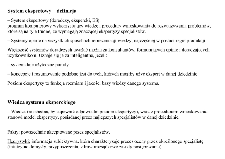 System ekspertowy – definicja Wiedza systemu eksperckiego
