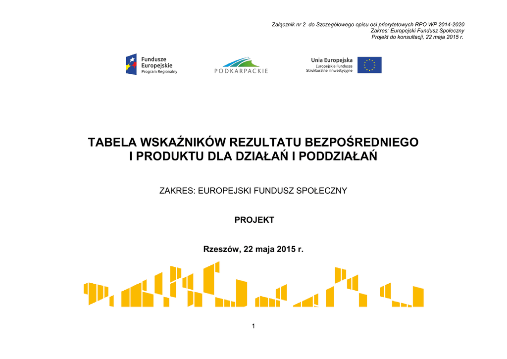 ZAŁĄCZNIK 2 Tabela wskaźników rezultatu bezpośredniego i