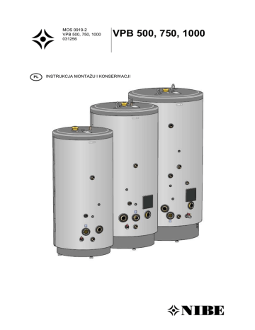 MOS 0919-2 VPB 500, 750, 1000 031256 PL VPB 500, 750, 1000 INSTRUKCJA MONTAśU I KONSERWACJI INSTRUKCJA MONTAśU I KONSERWACJI VPB 500, 750, 1000 Informacje ogólne Montowanie VPB jest serią zasobników c.w.u., które są dostosowane do podłączenie do pomp ciepła, bojlerów opalanych gazem lub olejem. Zasobnik c.w.u. naleŜy odkręcić z palety i przenieść na miejsce montaŜu, w razie konieczności uŜyć uch do podnoszenia. Zasobnik c.w.u. musi zostać zainstalowany w pozycji pionowej. Cztery stopki posiadają regulację wysokości. Po ustawieniu zasobnika c.w.u w Ŝądanej pozycji ucha do podnoszenia naleŜy odciąć. Otwór, który pozostał po uchach do podnoszenia musi być zaizolowany aby zminimalizować straty energii. Zbiornik wody składa się ze stalowego płaszcza z wykładziną miedzianą do ochrony przed korozją. Zasobnik c.w.u. jest wyposaŜony w Ŝebrowaną rurę miedzianą (dwie rury Ŝebrowe VPB 1000). Zasobnik c.w.u. jest zaprojektowany i wykonany dla ciśnienia maksymalnego 9 barów. Maksymalna dopuszczalna temperatura wynosi 95°C. VPB 500, 750, 1000 moŜe być wyposaŜony w następujące elementy, wymiar podłączenia G2. Podczas montowania zasobnika c.w.u. naleŜy upewnić Izolacja jest poliuretanowa co zapewnia doskonałą się, Ŝe jest wystarczająco duŜo miejsca na zdjęcie izolację cieplną. Izolację i płaszcz zewnętrzny z szarego elementu z przodu rejonu podłączania, patrz tabela plastiku moŜna łatwo zdjąć. poniŜej. VPB jest wyposaŜony w podłączenie dla grzałki zanurzeniowej i czujnik zanurzeniowy do kontrolowania podgrzewania wody. Zdejmowanie izolacji Do celów obsługi w małych pomieszczeniach izolację na VPB moŜna zdjąć (średnica zasobnika c.w.u. bez izolacji wynosi Ř 670/770/870 mm). 1. Usunąć wszystkie wkręty wzdłuŜ płytek łączących. 2. Podnieść pokrywę górną. 3. Wyciągnąć izolowane połówki płaszcza. Montowanie przeprowadzać w odwrotnej kolejności. Jeśli trudno jest dopasować wkręty w stare otwory to płytki moŜna odwrócić do góry nogami co daje nowe otwory w izolowanych połówkach płaszcza. Przed zamontowaniem rury załoŜyć dostarczone krąŜki przykrywające. Samoprzylepne z tyłu krąŜki przykrywające muszą być zamocowane na odpowiednich połączeniach przez dociśnięcie ich na połączenia. Element Moc wyjściowa Wolna przestrzeń IU 31 IU 33 IU 34 IU 36 IU 39 IU 310 IU 311 1500 W 2250 W 3000 W 4500 W 6000 W 7500 W 9000 W 250 mm 260 mm 280 mm 400 mm 400 mm 400 mm 400 mm Urządzenie nie jest przeznaczone do uŜytku przez osoby (włączając dzieci) z ograniczonych sprawnością fizyczną, czuciową lub umysłową, lub z brakiem doświadczenia i znajomości, chyba Ŝe pod nadzorem lub po otrzymaniu instrukcji dotyczących uŜycia urządzenia przez osobę odpowiedzialną za ich bezpieczeństwo. Dzieci powinny być nadzorowane aby upewnić się, Ŝe nie bawią się tym urządzeniem. Prawa do dokonywania jakichkolwiek modyfikacji technicznych lub projektowych są zastrzeŜone. ©NIBE 2009. 2 VPB 500, 750, 1000 MontaŜ/Konserwacja Wykres spadku ciśnienia Strona pierwotna (węŜownica). Instalowanie rur Zgodnie z odnośnymi normami zasobnik c.w.u. musi być wyposaŜony w termometr i manometr oraz zawór odcinający, zawór spustowy, zawór jednokierunkowy, zawór mieszający, zawór bezpieczeństwa i zawór podciśnieniowy. Dostarczony zawór spustowy z odpowiednią wtyczką naleŜy zamontować następująco: 1. Z zaworu spustowego zdjąć pierścień uszczelniający i nakrętkę pierścienia uszczelniającego. 1. Zamontować zawór na rurze spustowej uŜywając tego pierścienia uszczelniającego i nakrętki pierścienia uszczelniającego. 1. Na otwartym końcu zaworu spustowego pierścień uszczelniający zamienić zaślepką. Zasobnik musi być wyposaŜony w zawór mieszający, który ogranicza temperaturę wody wychodzącej do 60°C. Je śli ten zawór nie jest załoŜony to naleŜy podjąć inne środki aby zapobiec niebezpieczeństwu oparzenia. Zawór bezpieczeństwa musi być ustawiony na ciśnienie maksymalne 9 barów (0,9 Mpa). Rura przelewowa musi być tej samej średnicy co zawór bezpieczeństwa. Rura przelewowa musi być pochylona aby zapobiec powstawaniu skupisk wodny oraz musi równieŜ być mrozoodporna. Musi swobodnie przechodzić nad odpływem. WęŜownice w VPB 1000 muszą być podłączone równolegle (patrz obrazek poniŜej). W najwyŜszym punkcie górnej węŜownicy musi być zamontowana wentylacyjna złączka wkrętna z odpowiednim przyłączem rurowym T. Uwaga! Przed rozpoczęciem montowania rur załoŜyć krąŜki przykrywające. Połączenia elektryczne Uwaga! Instalacja elektryczna i jej obsługa muszą być wykonywane pod nadzorem wykwalifikowanego elektryka. Do VPB 500 moŜna dodać grzałkę zanurzeniową o maksymalnej mocy wyjściowej 9kW. Do VPB 750, 1000 moŜna dodać nawet dwie grzałki zanurzeniowe, maksymalna moc wyjściowa 2x9kW. KaŜda grzałka zanurzeniowa jest uzupełniona rozdzielaczem typu K11 (2 biegunowy termostat, 3 biegunowy ogranicznik temperatury). Nie modyfikować i nie zmieniać połączeń! Do kaŜdej grzałki zanurzeniowej przeciągnięte jest oddzielne zasilanie z centrali grupy. Uwaga! Przed podłączeniem ze strony elektrycznej zasobnik c.w.u. musi być całkowicie napełniony wodą. VPB 500, 750, 1000 3 Rozwiązywanie problemów z usterkami Napełnianie Zasobnik c.w.u. napełniać następująco 1. Odkręcić kran z ciepłą wodą w systemie. 2. Otworzyć zawór odcinający na wejściu zimnej wody. Ten zawór powinien być całkowicie otwarty podczas tej operacji. 3. Kran z ciepłą wodą moŜna zakręcić tylko kiedy zasobnik c.w.u. jest napełniony, tj. kiedy z kranu wypływa woda (początkowo z kranu wypływa mieszanka wody i powietrza). Konserwacja Zawór bezpieczeństwa naleŜy regularnie kontrolować, około 4 razy do roku, aby zapobiec powstawaniu zatorów. Aby przeprowadzić kontrolę zaworu naleŜy ręcznie otworzyć zawór be
