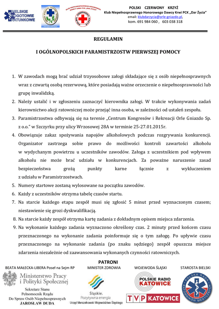 patroni regulamin i ogólnopolskich paramistrzostw pierwszej pomocy