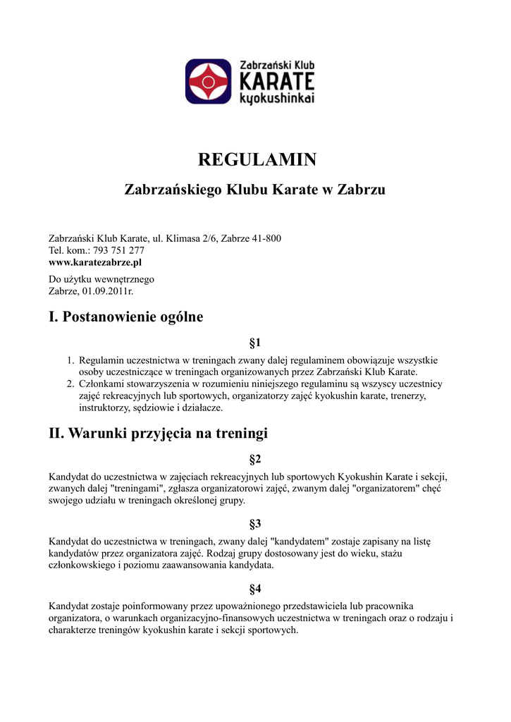 REGULAMIN - Zabrzański Klub Karate Kyokushin