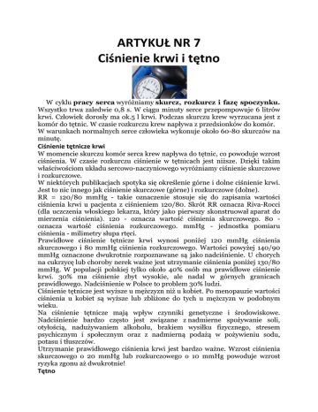 ARTYKUŁ NR 7 Ciśnienie krwi i tętno
