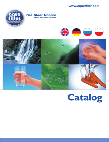 www.aquafilter.com Catalog List of contents.....................................................................................................................................................................................................................................................2 Introduction.....................................................................................................................................................................................................................3 Kitchen Filter Systems - Faucet Filters................................................................................................................................................................................................................7 Counter-top Kitchen Filters...................................................................................................................................................................................................................................7 Under-counter Kitchen Filters...............................................................................................................................................................................................................................8 RO Systems - Systems W/O Shell........................................................................................................................................................................................................................11 RO Systems with Outside Shell.......................................................................................................................................................................................................................14 Big Blue ® Filter Systems - Big Blue ® 10” Filter Systems.................................................................................................................................................................................15 Big Blue ® Filter Systems - Big Blue ® 20” Filter Systems.................................................................................................................................................................................15 Bathroom Filters - Shower Filters.........................................................................................................................................................................................................................16 Bathroom Filters - Bath Filters............................................................................................................................................................................................................................17 Bathroom Filters - Washing Machine Filters......................................................................................................................................................................................................17 Filter Housings - Cold Water..............................................................................................................................................................................................................................18 Filter Housings - Hot Water................................................................................................................................................................................................................................22 Filter Cartridges - Sediment..................................................................................................................................................................................................................................24 Membrane Elements - HF Membranes...............................................................................................................................................................................................................27 Filter Cartridges - Conditioning..........................................................................................................................................................................................................................27 Filter Cartridges - Enhancing.............................................................................................................................................................................................................................32 Filter Cartridges - Anti-bacterial..........................................................................................................................................................................................................................33 Cartridge Sets.....................................................................................................................................................................................................................................................34 Filter Cartridges - Empty......................................................................................................................................................................................................................................36 Membrane Elements - RO Membranes............................................................................................................................................................................................................36 UV Lamps............................................................................................................................................................................................................................................................37 Accessories & Filter Parts - Mounting Brackets.................................................................................................................................................................