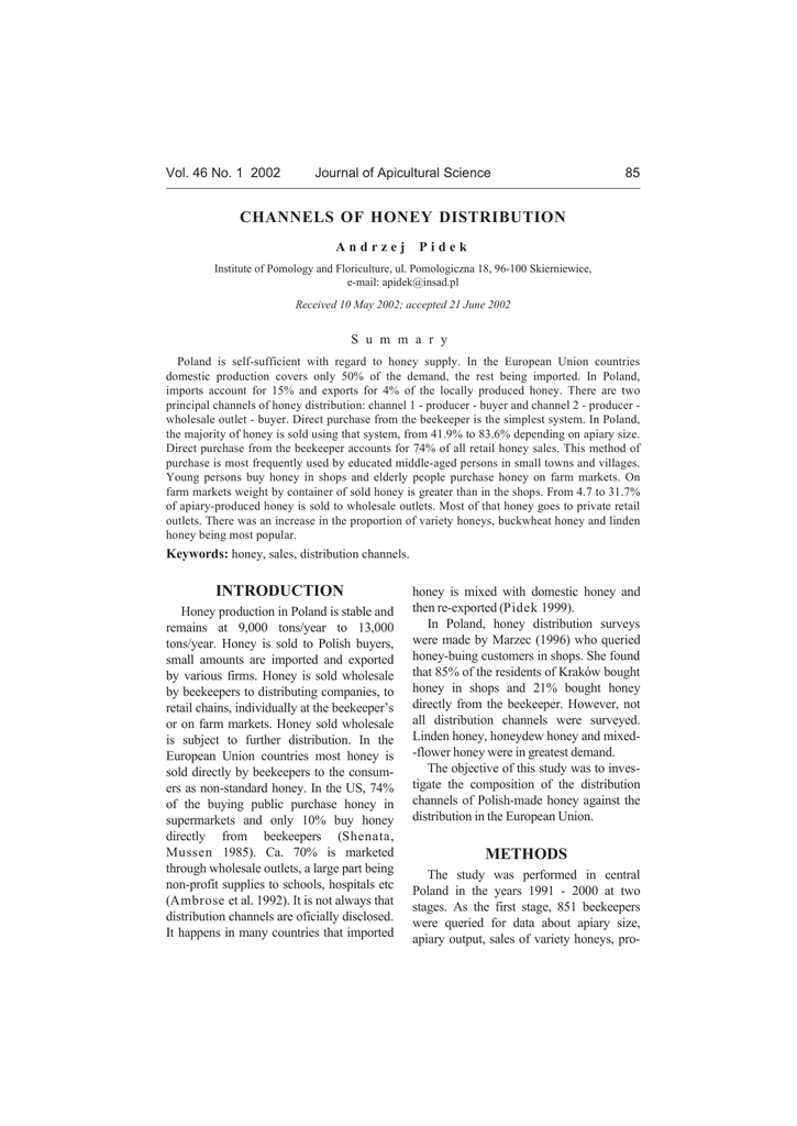 ʱ´ň ěę ұň ď îđđî Ö±«®˛ż´ ±ş ß°·˝«´¬«®ż´ Í˝·»˛˝» čë ÝŘßŇŇŰÔÍ ŃÚ ŘŃŇŰÇ Ü×ÍĚÎ×ŢËĚ×ŃŇ ß˛Ľ®¦»¶ Đ·Ľ»µ ײ¬·¬«¬» ±ş бł±´±ą§ ż˛Ľ Ú´±®·˝«´¬«®»ô «´ň бł±´±ą·˝¦˛ż ďčô çęóďđđ ͵·»®˛·»©·˝»ô »ółż·´ć ż°·Ľ»µŕ·˛żĽň°´ λ˝»·Ş»Ľ ďđ Óż§ îđđîĺ ż˝˝»°¬»Ľ îď Ö«˛» îđđî Í « ł ł ż ® § б´ż˛Ľ · »´şó«şş·˝·»˛¬ ©·¬¸ ®»ąż®Ľ ¬± ¸±˛»§ «°°´§ň ײ ¬¸» Ű«®±°»ż˛ ˲·±˛ ˝±«˛¬®·» Ľ±ł»¬·˝ °®±Ľ«˝¬·±˛ ˝±Ş»® ±˛´§ ëđű ±ş ¬¸» Ľ»łż˛Ľô ¬¸» ®»¬ ľ»·˛ą ·ł°±®¬»Ľň ײ б´ż˛Ľô ·ł°±®¬ ż˝˝±«˛¬ ş±® ďëű ż˛Ľ »¨°±®¬ ş±® ěű ±ş ¬¸» ´±˝ż´´§ °®±Ľ«˝»Ľ ¸±˛»§ň ̸»®» ż®» ¬©± °®·˛˝·°ż´ ˝¸ż˛˛»´ ±ş ¸±˛»§ Ľ·¬®·ľ«¬·±˛ć ˝¸ż˛˛»´ ď ó °®±Ľ«˝»® ó ľ«§»® ż˛Ľ ˝¸ż˛˛»´ î ó °®±Ľ«˝»® ó ©¸±´»ż´» ±«¬´»¬ ó ľ«§»®ň Ü·®»˝¬ °«®˝¸ż» ş®±ł ¬¸» ľ»»µ»»°»® · ¬¸» ·ł°´»¬ §¬»łň ײ б´ż˛Ľô ¬¸» łż¶±®·¬§ ±ş ¸±˛»§ · ±´Ľ «·˛ą ¬¸ż¬ §¬»łô ş®±ł ěďňçű ¬± číňęű Ľ»°»˛Ľ·˛ą ±˛ ż°·ż®§ ·¦»ň Ü·®»˝¬ °«®˝¸ż» ş®±ł ¬¸» ľ»»µ»»°»® ż˝˝±«˛¬ ş±® éěű ±ş ż´´ ®»¬ż·´ ¸±˛»§ ż´»ň ̸· ł»¬¸±Ľ ±ş °«®˝¸ż» · ł±¬ ş®»Ż«»˛¬´§ «»Ľ ľ§ »Ľ«˝ż¬»Ľ ł·ĽĽ´»óżą»Ľ °»®±˛ ·˛ łż´´ ¬±©˛ ż˛Ľ Ş·´´żą»ň DZ«˛ą °»®±˛ ľ«§ ¸±˛»§ ·˛ ¸±° ż˛Ľ »´Ľ»®´§ °»±°´» °«®˝¸ż» ¸±˛»§ ±˛ şż®ł łż®µ»¬ň Ѳ şż®ł łż®µ»¬ ©»·ą¸¬ ľ§ ˝±˛¬ż·˛»® ±ş ±´Ľ ¸±˛»§ · ą®»ż¬»® ¬¸ż˛ ·˛ ¬¸» ¸±°ň Ú®±ł ěňé ¬± íďňéű ±ş ż°·ż®§ó°®±Ľ«˝»Ľ ¸±˛»§ · ±´Ľ ¬± ©¸±´»ż´» ±«¬´»¬ň Ó±¬ ±ş ¬¸ż¬ ¸±˛»§ ą±» ¬± °®·Şż¬» ®»¬ż·´ ±«¬´»¬ň ̸»®» ©ż ż˛ ·˛˝®»ż» ·˛ ¬¸» °®±°±®¬·±˛ ±ş Şż®·»¬§ ¸±˛»§ô ľ«˝µ©¸»ż¬ ¸±˛»§ ż˛Ľ ´·˛Ľ»˛ ¸±˛»§ ľ»·˛ą ł±¬ °±°«´ż®ň Ő»§©±®Ľć ¸±˛»§ô ż´»ô Ľ·¬®·ľ«¬·±˛ ˝¸ż˛˛»´ň ×ŇĚÎŃÜËÝĚ×ŃŇ Ř±˛»§ °®±Ľ«˝¬·±˛ ·˛ б´ż˛Ľ · ¬żľ´» ż˛Ľ ®»łż·˛ ż¬ çôđđ𠬱˛ń§»ż® ¬± ďíôđđ𠬱˛ń§»ż®ň ر˛»§ · ±´Ľ ¬± б´·¸ ľ«§»®ô łż´´ żł±«˛¬ ż®» ·ł°±®¬»Ľ ż˛Ľ »¨°±®¬»Ľ ľ§ Şż®·±« ş·®łň ر˛»§ · ±´Ľ ©¸±´»ż´» ľ§ ľ»»µ»»°»® ¬± Ľ·¬®·ľ«¬·˛ą ˝±ł°ż˛·»ô ¬± ®»¬ż·´ ˝¸ż·˛ô ·˛Ľ·Ş·Ľ«ż´´§ ż¬ ¬¸» ľ»»µ»»°»® ±® ±˛ şż®ł łż®µ»¬ň ر˛»§ ±´Ľ ©¸±´»ż´» · «ľ¶»˝¬ ¬± ş«®¬¸»® Ľ·¬®·ľ«¬·±˛ň ײ ¬¸» Ű«®±°»ż˛ ˲·±˛ ˝±«˛¬®·» ł±¬ ¸±˛»§ · ±´Ľ Ľ·®»˝¬´§ ľ§ ľ»»µ»»°»® ¬± ¬¸» ˝±˛«łó »® ż ˛±˛ó¬ż˛Ľż®Ľ ¸±˛»§ň ײ ¬¸» ËÍô éěű ±ş ¬¸» ľ«§·˛ą °«ľ´·˝ °«®˝¸ż» ¸±˛»§ ·˛ «°»®łż®µ»¬ ż˛Ľ ±˛´§ ďđű ľ«§ ¸±˛»§ Ľ·®»˝¬´§ ş®±ł ľ»»µ»»°»® ř͸»˛ż¬żô Ó«»˛ ďçčë÷ň Ýżň éđű · łż®µ»¬»Ľ ¬¸®±«ą¸ ©¸±´»ż´» ±«¬´»¬ô ż ´ż®ą» °ż®¬ ľ»·˛ą ˛±˛ó°®±ş·¬ «°°´·» ¬± ˝¸±±´ô ¸±°·¬ż´ »¬˝ řßłľ®±» »¬ ż´ň ďççî÷ň ׬ · ˛±¬ ż´©ż§ ¬¸ż¬ Ľ·¬®·ľ«¬·±˛ ˝¸ż˛˛»´ ż®» ±ş·˝·ż´´§ Ľ·˝´±»Ľň ׬ ¸ż°°»˛ ·˛ łż˛§ ˝±«˛¬®·» ¬¸ż¬ ·ł°±®¬»Ľ ¸±˛»§ · ł·¨»Ľ ©·¬¸ Ľ±ł»¬·˝ ¸±˛»§ ż˛Ľ ¬¸»˛ ®»ó»¨°±®¬»Ľ řĐ·Ľ»µ ďççç÷ň ײ б´ż˛Ľô ¸±˛»§ Ľ·¬®·ľ«¬·±˛ «®Ş»§ ©»®» łżĽ» ľ§ Óż®¦»˝ řďççę÷ ©¸± Ż«»®·»Ľ ¸±˛»§óľ«·˛ą ˝«¬±ł»® ·˛ ¸±°ň ͸» ş±«˛Ľ ¬¸ż¬ čëű ±ş ¬¸» ®»·Ľ»˛¬ ±ş Ő®żµ-© ľ±«ą¸¬ ¸±˛»§ ·˛ ¸±° ż˛Ľ îďű ľ±«ą¸¬ ¸±˛»§ Ľ·®»˝¬´§ ş®±ł ¬¸» ľ»»µ»»°»®ň ر©»Ş»®ô ˛±¬ ż´´ Ľ·¬®·ľ«¬·±˛ ˝¸ż˛˛»´ ©»®» «®Ş»§»Ľň Ô·˛Ľ»˛ ¸±˛»§ô ¸±˛»§Ľ»© ¸±˛»§ ż˛Ľ ł·¨»Ľó óş´±©»® ¸±˛»§ ©»®» ·˛ ą®»ż¬»¬ Ľ»łż˛Ľň ̸» ±ľ¶»˝¬·Ş» ±ş ¬¸· ¬«Ľ§ ©ż ¬± ·˛Ş»ó ¬·ąż¬» ¬¸» ˝±ł°±·¬·±˛ ±ş ¬¸» Ľ·¬®·ľ«¬·±˛ ˝¸ż˛˛»´ ±ş б´·¸ółżĽ» ¸±˛»§ żąż·˛¬ ¬¸» Ľ·¬®·ľ«¬·±˛ ·˛ ¬¸» Ű«®±°»ż˛ ˲·±˛ň ÓŰĚŘŃÜÍ Ě¸» ¬«Ľ§ ©ż °»®ş±®ł»Ľ ·˛ ˝»˛¬®ż´ б´ż˛Ľ ·˛ ¬¸» §»ż® ďççď ó îđđ𠿬 ¬©± ¬żą»ň ß ¬¸» ş·®¬ ¬żą»ô čëď ľ»»µ»»°»® ©»®» Ż«»®·»Ľ ş±® Ľż¬ż żľ±«¬ ż°·ż®§ ·¦»ô ż°·ż®§ ±«¬°«¬ô ż´» ±ş Şż®·»¬§ ¸±˛»§ô °®±ó čę °±®¬·±˛ ±ş Şż®·»¬§ ¸±˛»§ ·˛ ¬±¬ż´ żł±«˛¬ ±ş ¸±˛»§ô Ľ·®»˝¬ ż´» ¬± ¬ż®ą»¬ ľ«§»®ň ̸» °»®˝»˛¬żą» ±ş ¸±˛»§ łż®µ»¬»Ľ «˛Ľ»® ¬¸» ľ»»µ»»°»® ±©˛ ´żľ»´ ©ż ż´± Ľ»¬»®ł·˛»Ľň ß ¬¸» »˝±˛Ľ ¬żą»ô íîđ ˝«¬±ł»® ±ş Ľ·şó ş»®»˛¬ żą» ©»®» Ż«»®·»Ľ ş±® ´±˝ż¬·±˛ ±ş ¸±˛»§ °«®˝¸ż» ż˛Ľ ş±® ¸±˛»§ Ż«ż´·¬§ň ̸» Ľż¬ż ©»®» ˝±ł°ż®»Ľ ©·¬¸ ¬¸» Ľż¬ż ˝±ł·˛ą ş®±ł Ľ·şş»®»˛¬ ŰË ±«®˝» ±˛ »¨°±®¬ô ·ł