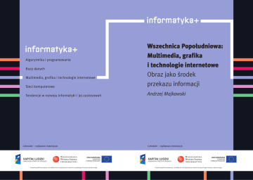 Wszechnica Popołudniowa: Multimedia, grafika i technologie internetowe Obraz jako środek przekazu informacji Andrzej Majkowski Obraz jako środek przekazu informacji Rodzaj zajęć: Wszechnica Popołudniowa Tytuł: Obraz jako środek przekazu informacji Autor: dr inż. Andrzej Majkowski Redaktor merytoryczny: prof. dr hab. Maciej M Sysło Zeszyt dydaktyczny opracowany w ramach projektu edukacyjnego Informatyka+ — ponadregionalny program rozwijania kompetencji uczniów szkół ponadgimnazjalnych w zakresie technologii informacyjno-komunikacyjnych (ICT). www.informatykaplus.edu.pl [email protected] Wydawca: Warszawska Wyższa Szkoła Informatyki ul. Lewartowskiego 17, 00-169 Warszawa www.wwsi.edu.pl [email protected] Projekt graficzny: FRYCZ I WICHA Warszawa 2009 Copyright © Warszawska Wyższa Szkoła Informatyki 2009 Publikacja nie jest przeznaczona do sprzedaży. Obraz jako środek przekazu informacji Andrzej Majkowski Politechnika Warszawska [email protected] <4> Informatyka + Streszczenie Obecnie trudno jest znaleźć dziedzinę nauki, a także i rozrywki, w której nie byłoby jakiegoś elementu związanego z cyfrowym przetwarzaniem obrazów. Na wykładzie poznamy, jak powstaje obraz i jak jest postrzegany przez człowieka. Poznamy, po co są tworzone i do czego używane modele barw. Opisane będą takie pojęcia, jak: kontrast, korekcja gamma, temperatura barwowa, balans bieli oraz podane zostanie, jak są one powiązane z jakością fotografii czy filmów. W dalszej części wykładu poznamy podstawy telewizji analogowej i cyfrowej. Omówione zostaną popularne systemy telewizji analogowej NTSC i PAL, cyfrowa telewizja systemu DVB, standard telewizji HDTV. Opisane zostaną algorytmy poprawy jakości obrazu stosowane w telewizji cyfrowej, umożliwiające eliminację migotania – technika 100Hz, redukcję artefaktów wynikających z kompresji, lepsze wyeksponowanie konturów obrazu. W części końcowej omówiona zostanie zasada działania wyświetlaczy LCD i ekranów plazmowych. Te dwie technologie zostaną również porównane ze sobą. Spis treści 1. Cyfrowe przetwarzanie obrazów .................................................................................................................. 5 1.1. Modele barw.......................................................................................................................................... 6 1.2. Kontrast, korekcja gamma, temperatura barwowa, balans bieli ............................................................. 8 2. Telewizja analogowa i cyfrowa ................................................................................................................... 10 2.1. Standard telewizji kolorowej HDTV .......................................................................................................11 2.2 Cyfrowa telewizja systemu DVB ............................................................................................................ 12 3. Poprawa jakości obrazu ............................................................................................................................. 12 3.1. Eliminacja migotania ........................................................................................................................... 12 3.2. Redukcja artefaktów wynikających z kompresji ................................................................................... 12 3.3. Eksponowanie konturów obrazu.......................................................................................................... 13 3.4. Algorytmy poprawy jakości obrazu...................................................................................................... 13 4. Wyświetlacze LCD ...................................................................................................................................... 14 5. Ekrany plazmowe ....................................................................................................................................... 20 Literatura ............................................................................................................................................... 22 > Obraz jako środek przekazu informacji <5> 1 CYFROWE PRZETWARZANIE OBRAZÓW Zmysł wzroku odgrywa w życiu człowieka niezwykle istotną rolę, związaną nie tylko z czysto fizycznym rozpoznawaniem i rozróżnianiem otaczających nas przedmiotów i zjawisk, ale wrażenia wzrokowe wpływają także na naszą psychikę, czy nastrój. Warto również podkreślić, że tą drogą mózg człowieka przyswaja największą ilość informacji z otaczającego nas świata. Z fizycznego punktu widzenia rejestracja promieniowania świetlnego jest realizowana na siatkówce oka. Siatkówkę oka można przyrównać do pewnego rodzaju światłoczułej matrycy, na której znajdują się receptory widzenia. Takimi receptorami są pręciki, które rejestrują jedynie natężenie światła, bez możliwości jego analizy barwnej oraz czopki, które reagują na światło o określonej barwie (rys. 1). Widzenie barwne jest wynikiem reakcji fotochemicznej, w której substancje białkowe zawarte w czopkach, zwane opsynami, reagują na światło absorbując poszczególne składowe promieniowania barwnego. Istnieją trzy rodzaje opsyn: absorbujące światło niebieskie, zielone i czerwone. Umożliwiają one barwne widzenie dzienne. Brak opsyny jednego rodzaju (np. absorbującej światło czerwone) powoduje niezdolność rozróżniania pewnych barw. W wyniku reakcji fotochemicznych energia świetlna zostaje przekształcona na impulsy nerwowe, które są dalej przesyłane przez nerw wzrokowy. Sygnały świetlne docierające do mózgu są zamieniane na cechy, takie jak: kształt, kolor, czy wzajemne relacje przestrzenne obiektów. Rysunek 1. Budowa oka Obrazy cyfrowe reprezentują te same sceny, które możemy obserwować, ale przedstawione w postaci dwuwymiarowych tablic pikseli. Technika cyfrowa umożliwia 