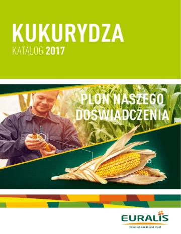 kukuRydza KATALOG 2017 PlON NaSzegO dOŚwiadczeNia NowA MARKA euRAlIs W kolejnych latach EURALIS planuje kontynuację dynamicznego rozwoju. Chcemy nadal dzielić się wiedzą i doświadczeniem, aby umożliwiać rolnikom najwyższe zbiory. Mamy ambicję stać się najbardziej innowacyjnym hodowcą i rzetelnym partnerem dla dystrybutorów i rolników. euRaliS dziŚ 1,200 NaSze ambicje Na 2020 ROk kONtyNuacja pracowników w 15 krajach dynamicznego wzrostu 75% umacNiaNie POzycji obrotu pochodzi z międzynarodowej sprzedaży 11 oddziałów w Europie POdwOjONy jednego z europejskich liderów na rynku nasion kukurydzy i roślin oleistych PakOwaNie Od 2017 ROku jedna jednostka siewna będzie zawierała 50 000 nasion obrót w ciągu 5 lat Ta ambicja przybiera wymierny kształt. Nasza marka się zmienia, staje się bardziej nowoczesna. Od stycznia 2016, EURALIS zyskuje nowe logo i identyfikację wizualną. Wyróżniać nas będzie nowe, proste i przejrzyste logo z symbolem nasion i hasłem „Creating seeds and trust”. Pojawią się również charakterystyczne elementy i kolorystyka nawiązująca do pól uprawnych. Nowe logo z symbolem nasion i międzynarodowym hasłem. 3 Nowa identyfikacja wizualna naszych produktów. tRoPICAl DeNt Zobacz film kukurydza jest gatunkiem uprawnym, u którego efekt heterozji przejawiający się zwyżką plonu jest u mieszańców bardzo wyraźny. to dlatego dziś, niemal w 100% materiał siewny kukurydzy stanowią właśnie odmiany mieszańcowe (F1). W ujęciu wieloletnim szacuje się, że zwyżka plonu ziarna wynosi 1q na rok. Jest to niespotykana u innych gatunków progresja plonowania. POStĘP HOdOwli kukuRydzy Plon Ziarna (q/ha) Zwyżka plonu ziarna 1 q / ha / rok 100 Prowadzone przez EURALIS prace badawcze i hodowlane, wspomagane wykorzystaniem najnowocześniejszych technik genetyki molekularnej zaowocowały wyselekcjonowaniem unikalnego źródła genetyki do wyprowadzania nowych odmian kukurydzy nazwanych „Tropical Dent®”. european Flint american dent N°1 american dent N°2 tropical dent american dent N°3 90 80 Grupy genetyczne 70 Dobra heterozja 60 Bardzo dobra heterozja 50 Grupa genetyczna „Tropical Dent” charakteryzuje się bardzo dobrą przydatnością do tworzenia odmian mieszańcowych z innymi grupami genetycznymi. Mieszańce F1 charakteryzują się wyraźnym efektem heterozji. y=1,34x – 2594,4 40 30 20 10 0 1955 1965 1975 1985 1995 2005 Rok Aby efekt heterozji był jak największy, konieczny jest wybór odległych genetyczne komponentów rodzicielskich mieszańca. Im większy jest dystans genetyczny między krzyżowanymi komponentami tym większą heterozję przejawiają mieszańce. Wysokość roślin, plon ziarna... niewielka zwyżka Linie wsobne blisko spokrewnione słaba heterozja linia wsobna linia wsobna linia wsobna z grupy Flint linia wsobna z grupy dent www.euralis.pl Wysokość roślin, plon ziarna... wyraźna zwyżka F1 (mieszaniec) Szybkość dojrzewania i dosychania ziarna otwiera kukurydzy ziarnowej nowe perspektywy do uprawy w rejonach o mniej sprzyjających warunkach klimatycznych jak np. Polska północna. Mieszańce „Tropical Dent®” posiadają ziarno zbliżone morfologicznie do typu „flint” – ziarniaki są okrągłe o charakterystycznym dla europejskich flintów żółto–pomarańczowym kolorze. Jednak proces dojrzewania i oddawania wody przez ziarno jest bardzo szybki – tak jak ma to miejsce u odmian z grupy „dent”. Odmiany „Tropical Dent®” mają swoich przedstawicieli we wszystkich grupach wczesności kukurydzy ziarnowej w Polsce. F1 (mieszaniec) Linie wsobne odległe genetycznie silna heterozja Grupa Tropical Dent® dzięki dużemu dystansowi genetycznemu w stosunku do dotychczas znanych materiałów wyjściowych wykorzystywanych w hodowli kukurydzy, charakteryzuje się bardzo wyraźnym efektem heterozji przejawiającym się zwyżką plonu ziarna, stabilnością plonowania oraz szybkim oddawaniem wody z ziarna zarówno podczas dojrzewania na polu jak i przy dosuszaniu. grupa 1 FaO 200-220 eS abakus, eS combi, eS Palazzo, eS zizou grupa 2 FaO 230-250 eS asteroid, eS cirrius, eS cockpit, eS concord, eS constellation, eS meteorit, eS zorion grupa 3 FaO 260-300 eS carmen, eS cubus, eS gallery Nowe kreacje odmianowe są obecnie na etapie badań hodowlanych oraz rejestrowych. W najbliższych latach możemy spodziewać się kolejnych nowości odmianowych EURALIS firmowanych znakiem „Tropical Dent®”. 4 Roots Power Zobacz film Skutki globalnych zmian klimatu zaczynają być coraz bardziej odczuwalne także w naszym kraju. Ostatnie dwa lata dotknęły niektóre rejony Polski katastrofalnymi suszami. Kluczowym elementem hodowli wybranych linii mieszańców EURALIS było znalezienie odmian znacznie bardziej tolerancyjnych zarówno na okresowe niedobory wody jak i szczególnie wysokie temperatury. W związku z tym mieszańce kukurydzy Roots Power z EURALIS zostały odpowiednio wyselekcjonowane pod kątem doskonale rozwiniętego systemu korzeniowego. Słaby korzeń Silny korzeń Dzięki nowoczesnym technikom badawczym, opartym o cyfrową analizę obrazu, eksperci EURALIS są w stanie wyselekcjonować odpowiednie rośliny spośród tysięcy badanych corocznie prób. Silny system korzeniowy zapewnia lepszą penetrację gleby, dzięki czemu rośliny nie tylko lepiej pobierają wodę z głębszych warstw gleby, ale także dzięki odpowiednio szerokiemu kątowi rozłożenia i licznym korzeniom bocznym, rośliny są dużo stabilniejsze i odporne na wyleganie. Najlepszy korzeń 5 Obecnie na polskim rynku oferowanych jest osiem mieszańców ROOTS POWER: ES Eurojet, ES Asteroid, ES Kongress, ES Metronom, ES Zorion, ES Cockpit, ES Meteorit, ES Gallery. Najgorszy korzeń oPtImaize BigBag OPtimaize to program selekcji mieszańców euRaliS na najlepszą kiszonkę. O wyborze odmian decyduje szereg surowych kryteriów, jakie mieszaniec musi spełnić, aby można było uzyskać z niego wartościową, energetyczną kiszonk