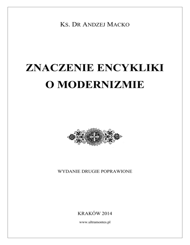 X. Dr. Andrzej Macko, Znaczenie encykliki o modernizmie. Tarnów 1909. NAKŁADEM