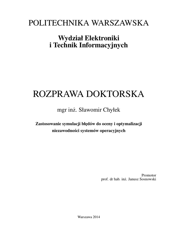 operacyjnych oraz tworzenie nowych mechanizmów wykrywania i obsługi bł˛edów.