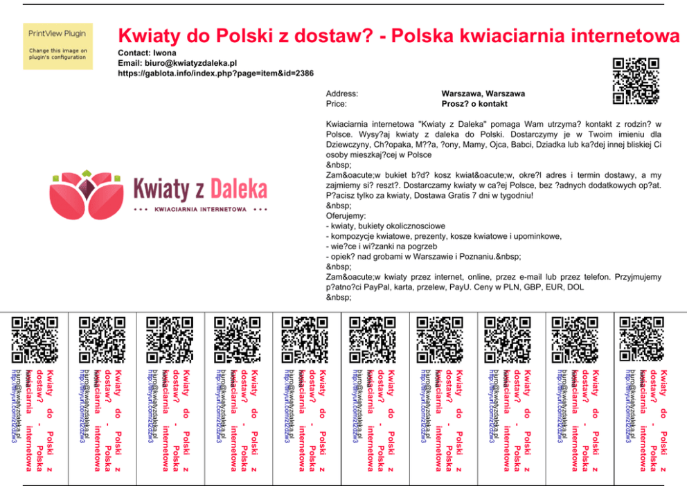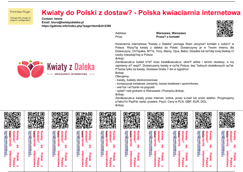 Kwiaty do Polski z dostaw? - Polska kwiaciarnia internetowa Contact: Iwona Email: [email protected] https://gablota.info/index.php?page=item&id=2386 Address: Price: Warszawa, Warszawa Prosz? o kontakt Kwiaciarnia internetowa "Kwiaty z Daleka" pomaga Wam utrzyma? kontakt z rodzin? w Polsce. Wysy?aj kwiaty z daleka do Polski. Dostarczymy je w Twoim imieniu dla Dziewczyny, Ch?opaka, M??a, ?ony, Mamy, Ojca, Babci, Dziadka lub ka?dej innej bliskiej Ci osoby mieszkaj?cej w Polsce Zamów bukiet b?d? kosz kwiatów, okre?l adres i termin dostawy, a my zajmiemy si? reszt?. Dostarczamy kwiaty w ca?ej Polsce, bez ?adnych dodatkowych op?at. P?acisz tylko za kwiaty, Dostawa Gratis 7 dni w tygodniu! Oferujemy: - kwiaty, bukiety okolicznosciowe - kompozycje kwiatowe, prezenty, kosze kwiatowe i upominkowe, - wie?ce i wi?zanki na pogrzeb - opiek? nad grobami w Warszawie i Poznaniu. Zamów kwiaty przez internet, online, przez e-mail lub przez telefon. Przyjmujemy p?atno?ci PayPal, karta, przelew, PayU. Ceny w PLN, GBP, EUR, DOL Kwiaty do Polski z dostaw? Polska kwiaciarnia internetowa Iwona [email protected] http://tinyurl.com/zl2dzw3 Kwiaty do Polski z dostaw? Polska kwiaciarnia internetowa Iwona [email protected] http://tinyurl.com/zl2dzw3 Kwiaty do Polski z dostaw? Polska kwiaciarnia internetowa Iwona [email protected] http://tinyurl.com/zl2dzw3 Kwiaty do Polski z dostaw? Polska kwiaciarnia internetowa Iwona [email protected] http://tinyurl.com/zl2dzw3 Kwiaty do Polski z dostaw? Polska kwiaciarnia internetowa Iwona [email protected] http://tinyurl.com/zl2dzw3 Kwiaty do Polski z dostaw? Polska kwiaciarnia internetowa Iwona [email protected] http://tinyurl.com/zl2dzw3 Kwiaty do Polski z dostaw? Polska kwiaciarnia internetowa Iwona [email protected] http://tinyurl.com/zl2dzw3 Kwiaty do Polski z dostaw? Polska kwiaciarnia internetowa Iwona [email protected] http://tinyurl.com/zl2dzw3 Kwiaty do Polski z dostaw? Polska kwiaciarnia internetowa Iwona [email protected] http://tinyurl.com/zl2dzw3 Kwiaty do Polski z dostaw? Polska kwiaciarnia internetowa Iwona [email protected] http://tinyurl.com/zl2dzw3 Powered by TCPDF (www.tcpdf.org)