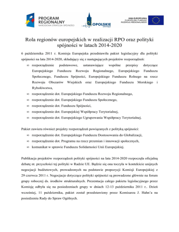 Rola regionów europejskich w realizacji RPO oraz polityki spójności