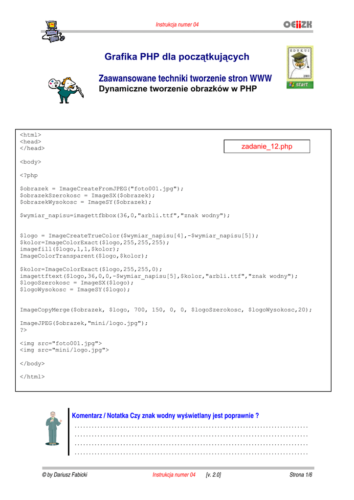 Komentarz / Notatka Czy znak wodny wyświetlany jest poprawnie ?