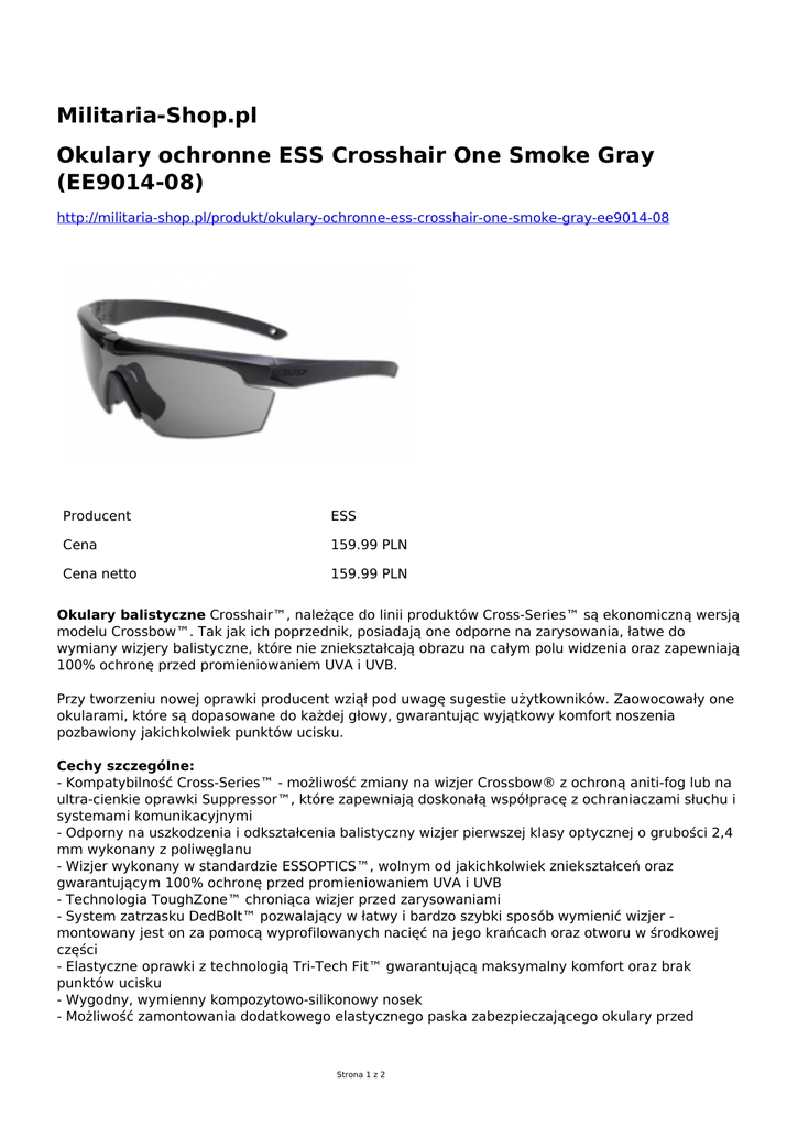 Militaria-Shop.pl Okulary ochronne ESS Crosshair One Smoke Gray