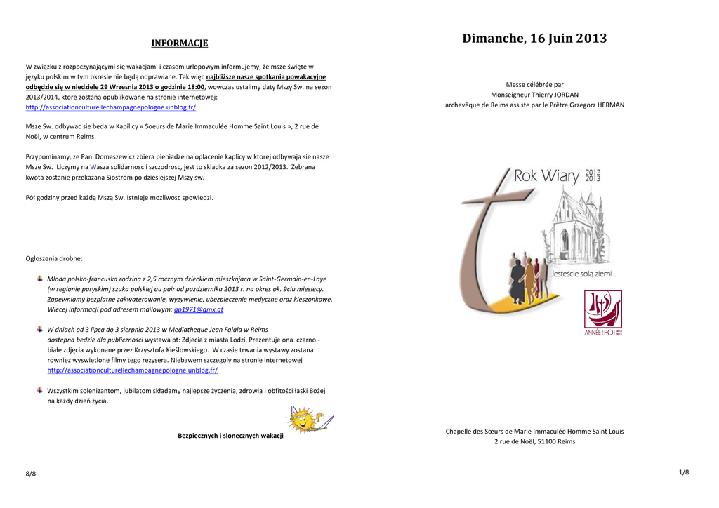 Dimanche, 16 Juin 2013 - Association Culturelle Champagne Pologne