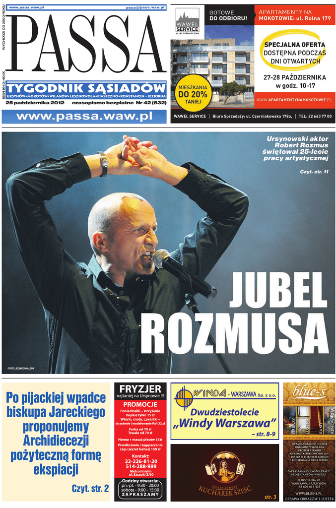 WYCHODZI OD 2000 ROKU ISSN 1640–405X 25 października 2012 czasopismo bezpłatne Nr 42 (632) Ursynowski aktor Robert Rozmus świętował 25-lecie pracy artystycznej Czyt. str. 11 FOTO LECH KOWALSKI Po pijackiej wpadce biskupa Jareckiego proponujemy Archidiecezji pożyteczną formę ekspiacji Czyt. str. 2 2 Alkomat i pastorał zji WP wcale nie trzeba kończyć specjalistycznych uczelni ani odsłużyć iluś tam lat w potrzebie wojennej, jeno wychylić co nieco z kolegami po fachu. bywatel Śliwiński, biskup diecezjalny elbląski, lubił się napić jak najszczerzej, po katolicku, o czym sam wiem najlepiej, bo przed 22 laty biesiadowaliśmy wspólnie przy dobrej nalewce. Jego długo tolerowaną słabostką było wszakże zamiłowanie do rajdów samochodowych na podwójnym gazie. Pech chciał, że w 2003, prowadząc z dosyć mizernym wprawdzie turbodoładowaniem 0,8 promila, spowodował jednak czołowe zderzenie z innym pojazdem i poważne obrażenia sześcioletniej dziewczynki oraz jej ojca. Tak w praktyce człek mianowany prezesem Ka- G tolickiego Stowarzyszenia Sportowego RP krzewił w narodzie kulturę trzeźwości. ndrzej Ś. przeniósł się już do lepszego ze światów, gdzie pewnie mają do jego słabostek anielską cierpliwość. Na szczęście znalazł na tym padole godnego kontynuatora, podtrzymującego tradycję. Tym kontynuatorem okazał się biskup pomocniczy warszawski Piotr Jarecki. Po niedawnym jego wyczynie za kierownicą można śmiało powiedzieć, że nie tylko dorównuje swojemu poprzednikowi, lecz nawet go przewyższa. Cóż to jest bowiem marne 0,8 promila wobec 2,5 (a może nawet 2,6), jakie stwierdzono we krwi biskupa pomocniczego, który w tym wypadku sam wymagał pomocy przy wychodzeniu z toyoty yaris, jaką ostro walnął w latarnię przy zjeździe na Wisłostradę. mniejsze zagrożenie po pijanemu, ale mimo to trafili do ciupy. ałkiem już trzeźwy biskup oddał się do dyspozycji papieża i obiecał, że skorzysta z usług specjalistycznej poradni (antyalkoholowej?). Polecałbym mu wspólną terapię z ursynowską modelką Iloną Felicjańską, która również wyznaczyła sobie abstynencką pokutę, oddawszy prawo jazdy na przechowanie. Myślę jednak, że reputacja Archidiecezji Warszawskiej została na tyle nadszarpnięta, że wymaga to pokuty innego rodzaju. Dobrze byłoby, żeby po przeprowadzeniu rachunku sumienia (i nie tylko) archidiecezja zwróciła miastu wycyganione sprytnie działki pod Kopą Cwila, idąc na wymianę, jaką zaproponowała prezydent Hanna Gronkiewicz-Waltz. Chodzi bowiem o to, żeby i wilk był syty, i PA S S M I TA owce całe. O M FOTO LECH KOWALSKI ój los kierowcy, jeżdżącego po ulicach Warszawy i okolic był już od dawna bardzo ciężki. Musiałem otóż strzec się korków, samolotów nisko przelatujących nad Puławską oraz coraz liczniejszych fotoradarów. Ten los stał się jednak jeszcze cięższy, gdy okazało się, że trzeba również uważać na prowadzących po pijaku biskupów. Duchowni tej rangi wyrobili sobie – chcąc nie chcąc – opinię ludzi, którzy raczej nie lubią wylewać za kołnierz. Zapracowa- dyby nie to, że metropolitą warszawskim jest akurat najporządniejszy bodaj duszpasterz w Polsce, mądry i skromny człowiek – kardynał Kazimierz Nycz, pewnie byśmy do dzisiaj nie mieli w sprawie Jareckiego oficjalnego komunikatu hierarchii. Mniemam wszakże, że właśnie dzięki jego Eminencji doczekaliśmy się błyskawicznie publicznej ekspiacji ze strony biskupiego rajdowca, który niejednokrotnie pouczał naród, że trzeźwość to podstawa. Ob. Jarecki skorzystał z porady prawników i sam poprosił o wymierzenie mu kary sądowej w raczej symbolicznym wymiarze w stosunku do wagi popełnionego przezeń przestępstwa. Wygląda na to, że dzięki temu nie pójdzie siedzieć – jak wielu wiejskich rowerzystów, którzy spowodowali wprawdzie o wiele li na nią między innymi obywatele Sławoj Leszek Głódź i śp. Andrzej Józef Śliwiński. Ten pierwszy – jak najsłuszniej został obrany biskupem polowym Wojska Polskiego, by z wielkim poświęceniem pełnić tę służbę w latach 1991-2004 nie żałując gardła. Nie z racji często wygłaszanych homilii bynajmniej. Sławoj Leszek dał się bowiem poznać jako naprawdę najtęższy łeb w całym episkopacie polskim. Znany antyklerykał, a może nawet antychryst – Jerzy Urban – określał polowego mianem Flaszka-Głódź. Zapewne z uwagi na absolutną przezroczystość jego działań. Ascetyczne oblicze Leszka Sławoja godne jest uwiecznienia w Muzeum Wojska Polskiego jako doskonały wzór umiarkowania w jedzeniu i piciu. Poza wszystkim zaś obywatel Głódź udowodnił, że dla uzyskania awansu na generała dywi- A C Burmistrz Ursynowa odznaczony przez prezydenta Węgier W 56. rocznicę powstania węgierskiego 1956 r. minister spraw zagranicznych Węgier dr Janosz Martoyi wręczył burmistrzowi Ursynowa Piotrowi Guziałowi Węgierski Złoty Krzyż Zasługi. Odznaczenie zostało przyznane za zasługi w pielęgnowaniu pamiątek związanych z Węgrami oraz pomoc w budowie postumentu bohatera węgierskiego Jánosa Esterházy’ego na terenie Dzielnicy Ursynów. W uroczystości wzięli udział ambasador Węgier Iván Gyurcsík, minister – kierownik Urzędu ds. Kombatantów i Osób Represjonowanych Jan Ciechanowski, były ambasador RP w Budapeszcie Grzegorz Łubczyk, były ambasador Republiki Węgierskiej w Polsce Ákos Engelmayer. W uroczystości wzięli udział również zastępca burmistrza Piotr Machaj, ursynowska radna Teresa JurczyńskaOwczarek oraz bliscy burmistrza Piotra Guziała. Wręczenie odznaczeń przypadło w rocznicę powstania węgierskiego, które wybuchło 23 października 1956 roku. Zbieżność dat miała wymiar symboliczny. Powstanie było tragiczne w skutkach dla narodu węgierskiego, jednak dzięki pomocy udzielonej przez Polaków udało się uratować wielu „węgierskich bratanków”. W tym okresie w Polsce po