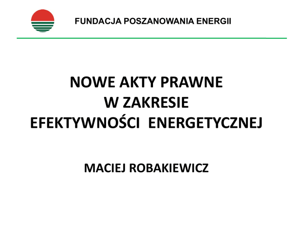 FUNDACJA POSZANOWANIA ENERGII NOWE AKTY PRAWNE W ZAKRESIE EFEKTYWNOŚCI ENERGETYCZNEJ MACIEJ ROBAKIEWICZ ZMIANY W PRAWIE Opublikowane zostały nowe akty prawne dotyczące problemów efektywności energetycznej, które zawierają nowe rozwiązania w tej dziedzinie. W referacie omówiono te przepisy, które wprowadzają ważne zmiany w dotychczasowym stanie prawnym. ----------------------Skomplikowana sytuacja prawna powstała w przepisach dotyczących świadectw energetycznych. Ukazały się w krótkim czasie 3 akty prawne. METODYKA ŚWIADECTW ENERGETYCZNYCH Prawo Budowlane Art.5 ust 3-15,art.5,1 i 5,2 19.09.2007 zastępuje 8.09.2014 Ustawa o charakterystyce energetycznej budynków Rozporządzenie w sprawie metodologii świadectw z Z 6.11.2008 zastępuje 2.07.2014 Rozporządzenie w sprawie metodologii świadectw zastępuje 18.03.2015 Rozporządzenie w sprawie metodologii świadectw METODYKA ŚWIADECTW ENERGETYCZNYCH Rozporządzenie Ministra Infrastruktury i Rozwoju z dnia 3 czerwca 2014 r. w sprawie metodologii obliczania charakterystyki energetycznej budynku i lokalu mieszkalnego oraz sposobu sporządzania i wzorów świadectw charakterystyki energetycznej (Dz. U. 2 lipca 2014 r. Poz. 888) Rozporządzenie weszło w życie 2 października 2014 r. Rozporządzenie wprowadziło kilka nowych ustaleń oraz szereg zmian, które porządkują wcześniej obowiązującą metodę sporządzania świadectw. Nie zmieniono głównej formy podsumowania oceny energetycznej – pozostawiając t.zw . suwak , a nie wprowadzono klas energetycznych. METODYKA ŚWIADECTW ENERGETYCZNYCH Podstawą obliczeń zapotrzebowania ciepła na potrzeby ogrzewania, chłodzenia i wentylacji pozostały zasady normy PN EN SO 13790 z pewnymi uzupełnieniami. Wprowadzono nowe (inne niż w normach) wartości strumienia powietrza zewnętrznego, Wprowadzono nowe wartości wewnętrznych zysków ciepła. Jako podstawę obliczenia zużycia ciepłej wody przyjęto wskaźniki odniesione do 1 m2 powierzchni budynku, a nie do liczby mieszkańców. Wprowadzony został podział na budynki wyposażone w proste systemy techniczne oraz wyposażone w złożone systemy techniczne ( wykorzystujące więcej niż jeden rodzaj źródła energii). . METODYKA ŚWIADECTW ENERGETYCZNYCH NOWE ELEMENTY CHARAKTERYSTYKI: Jednostkowa wielkość emisji CO2, Udział odnawialnych źródeł energii w rocznym zapotrzebowaniu na energię końcową, Obliczeniowa roczna ilość zużywanego nośnika energii lub energii. Ten element charakterystyki może być cenną informacją dla użytkowników , gdyż wprost przekłada się na koszty korzystania z energii. METODYKA ŚWIADECTW ENERGETYCZNYCH Podstawowe wskaźniki (I strona świadectwa) dotychczas EK EP obecnie śświadectwa EU (zużycie energii użytkowej) EK (zużycie energii końcowej) EP (zużycie energii pierwotnej) ECO2 (wskaźnik emisji CO2) % OZE (energia odnawialna) Ilość zużywanej energii METODYKA ŚWIADECTW ENERGETYCZNYCH W formularzu świadectwa na str 2 wprowadzono tabelę, w której trzeba podać podstawowe parametry związane z określeniem charakterystyki energetycznej, a wiec współczynniki przenikania ciepła dla przegród zewnętrznych oraz sprawności systemów ogrzewania chłodzenia i ciepłej wody. Poprzednio wymagana była ogólna charakterystyka bez podawania wszystkich konkretnych danych liczbowych. Jest to dobre rozwiązanie, gdyż są to nie tylko ważne informacje dla użytkowników , ale jest to baza danych do wykorzystania przy opracowaniu świadectw dla poszczególnych lokali lub części budynku. METODYKA ŚWIADECTW ENERGETYCZNYCH W rozporządzeniu przyjęto, że obliczania charakterystyki energetycznej budynku dokonuje się w oparciu o dane normatywne (metoda obliczeniowa) lub w oparciu o faktycznie zużytą ilość energii ( metoda zużyciowa). W metodzie zużyciowej podstawą do określenia charakterystyki jest pomierzone zużycie ciepła i gazu w okresie ostatnich 3 lat. Wprowadzenie tej metody budzi wątpliwości, gdyż: 1) Dla tego samego budynku mogą być obecnie podane dwie różne charakterystyki , wyznaczone różnymi metodami, 2) Dwa identyczne budynki mogą mieć wyznaczone metodą zużyciową znacznie różniące się charakterystyki ze względu na różną liczbę mieszkańców lub sposobu użytkowania. 3) Kolejne okresy 3-letnie mogą mieć różną średnią temperaturę zewnętrzną, a tym samym różne zużycie ciepła. METODYKA ŚWIADECTW ENERGETYCZNYCH Wprowadzono definicję powierzchni ogrzewanej lub chłodzonej, przyjmując, że jest to powierzchnia użytkowa wg normy PN-ISO 9836, a w przypadku budynków jednorodzinnych i lokali mieszkalnych ustalono, że powierzchnia ta jest zaliczana w 100%, jeżeli wysokość przekracza 2,20m, w 50 % jeżeli jest od 1,40 do2,20m oraz jest pomijana przy wysokości mniejszej niż 1,40 m. Definicja ta była błędna, gdyż wg normy powierzchnia użytkowa nie obejmuje powierzchni komunikacji (korytarzy i klatek schodowych), które mogą być ogrzewane W nowym rozporządzeniu zmieniono tę definicję! METODYKA ŚWIADECTW ENERGETYCZNYCH Rozporządzenie w sprawie świadectw z 2.07.2014 było wydane na podstawie przepisów Prawa Budowlanego, które zostały zastąpione przez Ustawę o charakterystyce energetycznej budynków. W związku z tym Minister Infrastruktury i Rozwoju miał obowiązek wydania nowego rozporządzenia na podstawie tej ustawy . Wydane zostało : Rozporządzenie Ministra Infrastruktury i Rozwoju z dnia 27 lutego 2015 r. w sprawie metodologii wyznaczania charakterystyki energetycznej budynku lub części budynku oraz świadectw charakterystyki energetycznej (Dz. U. 18 marca 2015 r. Poz. 376) Rozporządzenie weszło w życie 17 kwietnia 2015 r. i zastąpiło rozporządzenie z 2.07.2014 r. METODYKA ŚWIADECTW ENERGETYCZNYCH Nowe rozporządzenie utrzymuje dotychczasową metodykę , ale wprowadza następujące zmiany w porównaniu do poprzedniego rozporządzenia: 1) Świadectwa dotyczą budynków i części budynków 