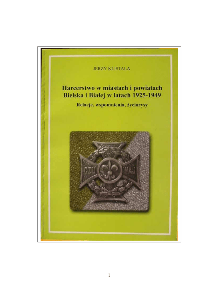1 JERZY KLISTAŁA Harcerstwo w miastach i powiatach Bielska i Białej w latach 1925-1949. Relacje, wspomnienia, życiorysy. BIELSKO-BIAŁA 2005 2 Corpyright by: Jerzy Klistała 2005 Konsultacja: hm. Józef Drożdż, hm. Zdzisława Kobiela. Korekta merytoryczna: hm. Krystyna Wójcicka, hm. Teresa Ceremuga. Materiały archiwalne: Zbiory prywatne hm. Józefa Drożdża i hm. Zdzisławy Kobieli. Zbiory z Izby Tradycji Hufca Beskidzkiego ZHP w Bielsku- Białej Książka ukazała się dzięki inicjatywie hm. Józefa Drożdża ISBN 83-916718-6-0 Druk i sklad: Wydawnictwo „Prasa Beskidzka” Sp. Z o.o. Ul. Dubois 4, 43-300 Bielsko-Biała, tel. (33) 819 39 58. 3 Książkę tą poświęcam druhnom i druhom, którzy w życiowych poczynaniach wierni byli słowom Przyrzeczenia Harcerskiego. 4 SPIS TREŚCI Od Autora Zarys historii ZHP w miastach i powiatach Bielska i Białej I ROZDZIAŁ KALENDARIUM - Komendanci Hufców w latach 1925-1949 - Noty biograficzne hufcowych KALENDARIUM POWSTAWANIA HUFCÓW, DRUŻYN, ZASTĘPÓW, GROMAD ZUCHOWYCH - Hufiec Harcerek – Biała Krakowska – Chorągiew Harcerek Kraków - Hufiec Harcerek – Bielsko – Chorągiew Śląska Katowice - Hufiec Harcerzy – Biała Krakowska – Chorągiew Harcerzy Kraków - Hufiec Harcerzy – Bielsko – Chorągiew Śląska Katowice - Hufiec Bielski i Bialski Harcerzy – okres powojenny lata 1945-1949 - Beskidzki Hufiec Harcerzy w Bielsku w okresie 1945-1949 - Beskidzki Hufiec Harcerek w Bielsku w okresie 1945-1949 II ROZDZIAŁ DRUŻUNY HARCERSKIE MĘSKIE -I Drużyna Harcerska im. T. Kościuszki przy Państwowym Gimnazjum Polskim w Bielsku - II Drużyna Harcerzy im. ks. J. Poniatowskiego - III Drużyna Harcerzy im. Kazimierza Pułaskiego przy Szkole Wydziałowej w Bielsku - IV Męska Drużyna Harcerska dla Pracujących im. Zawiszy Czarnego - V Drużyna Harcerska – Kolejowa im. Marszałka J. Piłsudskiego - I Drużyna Harcerska im. T. Kościuszki w Mikuszowicach Śląskich - VI Drużyna Harcerska – Mniejszościowa Niemiecka - IV Lotnicza Drużyna Harcerska im. Orlicz-Dreszera w Białej - 21 Lotnicza Drużyna Harcerska im. Szczepana Grzeszczyka - Harcerstwo Wilkowic (25 Męska Drużyna Harcerzy im. Romana Konckiego w Wilkowicach) - Drużyna Harcerska im. ks. J. Londzina w Jasienicy DRUŻYNY HARCERSKIE – ŻEŃSKIE - Informacje wstępne o drużynach harcerek - I Drużyna Harcerek im. E. Plater przy Prywatnym Seminarium Nauczycielskim Żeńskim im. św. Hildegardy w Białej Krakowskiej. - III Drużyna Harcerek im. M. Konopnickiej przy Szkole Handlowej w Białej Krakowskiej HARCERSTWO CZECHOWIC I DZIEDZIC Powstawanie Drużyn Harcerskich w Czechowicach i Dziedzicach w okresie 19281939 r. - Drużyna Harcerska Kolejowa w Dziedzicach - Drużyna Harcerska im. Władysława Warneńczyka w Czechowicach-Lipowcu - Drużyna Harcerska im. Żwirki i Wigury – „Kopalniana” - Drużyna Harcerzy im. ks. J. Londzina w Zabrzegu 5 - Gromady Zuchowe przy Szkole Dziedzickiej - Harcerski Klub Sportowy – Sekcja w Dziedzicach - DZIAŁALNOŚĆ ZHP NA TERENIE CZECHOWIC-DZIEDZIC W LATACH 1945-1949. III ROZDZIAŁ. WYDARZENIA, OSOBISTOŚCI, SYMBOLIKA, MIEJSCOWOŚCI. - Bielscy Harcerze w walce zbrojnej z hitlerowskim najeźdźcą - Pogotowie Harcerek – Hufiec Harcerek Białej Krakowskiej i Bielska – okres okupacji hitlerowskiej (1939-1945). - Harcerski i harcerze z Hufca Biała Krakowska i Bielsko w okresie 1939-1945 - Józef Pukowiec – wielki patriota, komendant Śląskiej Chorągwi Harcerzy w okresie okupacji - Śląski komendant harcmistrz Wojciech Niederliński - Pacut Zofia - Dziamian Maria - Łaszczok Mieczysław - Ostatnia rozmowa z moim bratem (wspomnienie siostry Wandy). - Janik Bronisław – Droga do Harcerskiego Krzyża - Bucze – kuźnia umysłów.... - Jubileuszowy Zlot w Spale 1935 r. - Harcerski Klub Narciarski – Bielsko - Harcerska Spółdzielnia „Beskid” w Bielsku-Białej ROZDZIAŁ IV. - Słownik biograficzny harcerek i harcerzy funkcyjnych - Postscriptum. ROZDZIAŁ VI. Pamięć zachowana w zdjęciach 6 Ojczyzna to ziemia i groby. Narody tracąc pamięć tracą życie. (Ferdinard Foch) Sentencja powyższa widnieje przy wejściu do starego Cmentarza w Zakopanem. U dołu widnieją jeszcze słowa „Zakopane pamięta 1848-1948”. A my, beskidzcy harcerze pamiętamy? Pamiętamy tych, którzy organizowali pierwsze drużyny na terenie Bielska i Białej. Od wielu już lat piszemy drobne wspomnienia i opracowania historyczne dotyczące działalności ZHP w naszej małej Ojczyźnie. Zbieramy stare dokumenty z działalności naszych drużyn i gromad. Powstała przy Hufcu Beskidzkim ZHP Izba Tradycji. Napisano kilka prac magisterskich o działalności drużyn i Hufca Beskidzkiego. Autorom tych opracowań dziękujemy - to co stworzyli pozostanie dla zuchów, harcerek, harcerzy, którzy wkroczą kiedyś na ścieżkę historii. Konieczne jednak było zebranie tych materiałów w jednym dostępnym wszystkim opracowaniu. Do napisania książki opartej na materiałach historycznych usilnie dążył dh. hm. Józef Drożdż. Opracowania takiego podjął się druh Jerzy Klistała. Zbierał oryginały dokumentów, fotografie, relacje z działalności drużyn i instruktorów. Przeglądał kroniki, rozmawiał z nielicznymi już świadkami tamtych lat. Wiele godzin spędził w Harcerskiej Izbie Tradycji przeglądając znajdujące się tam materiały. Powoli powstawał zarys pracy. Dołączyły do tego opracowania materiały historyczne z podhufca Czechowice-Dziedzice i tak powstała książka. Liczymy, że będzie ona pomocą w poznawaniu przeszłośi dla przyszłych pokoleń harcerskiej braci, pamiętającej o tych, którzy rozwinęli ideę skautingu, zapoczątkowali harcerską działalność na terenie naszego miasta. Jest to tylko cząstka naszej działalności obejmująca lata 1925-1949. Pierwsza z podanych dat i rok 2005 obejmują 80 lat naszej harcerskiej służby w Bielsku-Białej. W związku z tą rocznicą dążyliśmy do wydania tej ksią