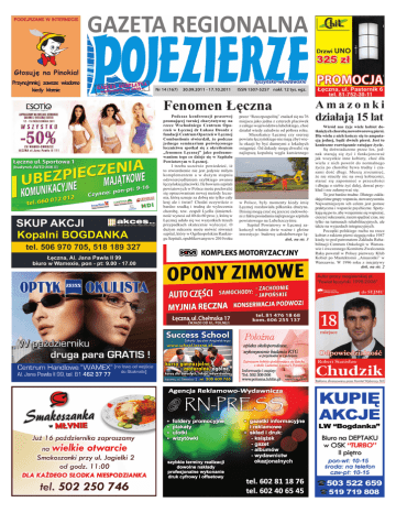 Nr 14 (167) 30.09.2011 - 17.10.2011 ISSN 1507-5257 nakł. 12 tys. egz. Fenomen Łęczna Podczas konferencji prasowej promującej turniej charytatywny na rzecz Wschodniego Centrum Oparzeń w Łęcznej dr Łukasz Drozdz z fundacji Centrum Oparzeń w Łęcznej Combustionis stwierdził, że podczas jednego seminarium poświęconego lecznictwu spotkał się z określeniem „fenomen Łęcznej” jako podsumowaniem tego co dzieje się w Szpitalu Powiatowym w Łęcznej. I trzeba uczciwie powiedzieć, iż to stwierdzenie nie jest jedynie miłym komplementem a w dużym stopniu odzwierciedleniem szybkiego awansu łęczyńskiej placówki. Ile bowiem szpitali powiatowych w Polsce może pochwalić się opracowaniem nowej metody leczenia, którą uznaje za dobrą nie tylko cały kraj ale i świat? Chodzi oczywiście o bardzo rzadką i trudną do wyleczenia chorobę, tzw. zespół Lyella (śmiertelność wynosi od 40 do 60 proc.), którą w Łęcznej udało się we wszystkich trzech przypadkach skutecznie wyleczyć. O dużym sukcesie może mówić również szpital, który w Ogólnopolskim Rankingu Szpitali, opublikowanym w 2010 roku przez “Rzeczpospolitą” znalazł się na 76 miejscu jako jedna z czterech placówek z całego województwa lubelskiego, choć działał wtedy zaledwie od półtora roku. Mieszkańcy Łęcznej czy szerzej powiatu łęczyńskiego nie mają zbyt wielu okazji by być dumnymi z lokalnych osiągnięć. Od dekady mogą chwalić się najlepszą kopalnią węgla kamiennego w Polsce, były momenty kiedy imię Łęcznej rozsławiała piłkarska drużyna. Dzisiaj mogą czuć się jeszcze zadowoleni z faktu posiadania najlepszego szpitala powiatowego na Lubelszczyźnie. Szpital Powiatowy w Łęcznej zakończył właśnie dwie ważne i głośne inwestycje: budowę całodobowego lądok. na str. 3 Amazonki działają 15 lat Wśród nas żyje wiele kobiet dotkniętych chorobą nowotworową piersi. Dla wielu z nich kończy się to amputacją jednej, bądź dwóch piersi. Jest to konieczne rozwiązanie ratujące życie. Są doświadczone przez los, jednak starają się żyć i funkcjonować jak wszystkie inne kobiety, choć dla wielu z nich powrót do normalnego życia po chorobie bywa trudny i czasami dość długi. Muszą zrozumieć, że nie straciły nic na swej kobiecości, starać się zapomnieć o przeszłości i dbając o siebie żyć dalej, dawać przykład i nie załamywać się. To jest bardzo trudne. Dlatego zakładają różne grupy wsparcia, stowarzyszenia. Najważniejszym ich celem jest pomoc praktyczna i wsparcie psychiczne. Spotykają się po to, aby wzajemnie się wspierać, cieszyć sukcesami, razem spędzać czas, nie tylko na turnusach rehabilitacyjnych, ale także na wyjazdach integracyjnych. Początki polskiego ruchu na rzecz kobiet z rakiem piersi sięgają roku 1987 kiedy to pod patronatem Zakładu Rehabilitacji Centrum Onkologii w Warszawie i ówczesnego Komitetu Zwalczania Raka powstał w Polsce pierwszy Klub Kobiet po Mastektomii „Amazonki” w Warszawie. W 1996 roku z inicjatywy dok. na str. 2 www.e-pojezierze.pl 2 K R O N I K A Z DAR Z E Ń Po piwku trafił w dom 15 września o godz. 1:00 w nocy, w miejscowości Puchaczów kierujący oplem vectra stracił panowanie nad pojazdem i wjechał w dom mieszkalny. Samochód wypadł z drogi po czym przejechał przez chodnik i uderzył w dom mieszkalny. Na szczęście nikt nie ucierpiał w tym zdarzeniu. Policjanci sprawdzili stan trzeźwości kierującego. Okazało się, że 48 – letni mieszkaniec Łęcznej miał blisko 0, 5 promila alkoholu w organizmie. Teraz mężczyzna za swój czyn odpowie przed sądem. Policjanci proszą o pomoc Łęczyńscy policjanci proszą o pomoc w ustaleniu sprawcy kradzieży krzewu ,,tuja żywotnik zachodni”. Krzew skradziono z jednej z posesji w miejscowości Jaszczów gm. Milejów. Świadkowie lub osoby mogące udzielić informacji pomocnych w ustaleniu sprawy proszeni są o kontakt z Komendą Powiatową Policji w Łęcznej pod nr tel. 81 75 27 210. Do zdarzenia doszło w nocy z 12 na 13 września w miejscowości Jaszczów gm. Milejów. Nieznany sprawca z terenu posesji skradł ,,tuję żywotnik zachodni” w formie ciętej, czterech kul na pniu, o wysokości 230 cm wraz z dębową donicą. Pokrzywdzony wartość skradzionego krzewu szacuje na kwotę 1 200 zł. Ukradli, przemalowali a i tak wpadli 22 września łęczyńscy kryminalni zatrzymali dwóch mężczyzn, 22 - letnich mieszkańców Chełma i gm. Rejowiec, do sprawy kradzieży samochodu marki Suzuki Samuraj. Pojazd ten z informacją o sprzedaży stał zaparkowany na posesji w gm. Puchaczów. Właściciel oszacował straty na kwotę 6 tys. zł. Do zdarzenia doszło w nocy z wtorku na środę. Jak ustalili funkcjonariusze mężczyźni najpierw ukradli tablice rejestracyjne z dwóch pojazdów zaparkowanych w Puchaczowie po czym podczepili do suzuki i do swojego samochodu, którym się poruszali. Skradziony pojazd ukryli na posesji wujka jednego ze sprawców w gm. Niedrzwica Duża. Tam samochód zastał przez nich przemalowany z koloru czerwonego na kolor czarny. Policjanci odzyskali skradziony pojazd i przekazali właścicielowi. Funkcjonariusze odzyskali też skradzione tablice rejestracyjne. 22 września 22–letni mieszkaniec Chełma usłyszał zarzut kradzieży z włamaniem. Dzień później ten sam zarzut policjanci przedstawili jego koledze. Obaj mężczyźni zostaną doprowadzeni przed oblicze prokuratora, który zadecyduje o ich dalszym losie. Zgodnie z obowiązującym prawem przestępstwo to zagrożone jest karą do 10 lat pozbawienia wolności. Zatrzymano pedofila 26 września funkcjonariusze policji zatrzymali 41-letniego mieszkańca Lublina, który 12 września w gminie Ludwin próbował wykorzystać seksualnie 12-latka. Podejrzany został wytypowany m.in. na podstawie rysopisu i wyglądu samochodu, którym się poruszał. Później Krzysztofa H. rozpoznał również napastowany chłopiec z Ludwina. Mężczyźnie p