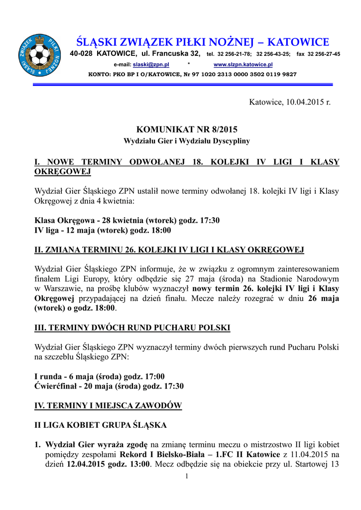 komunikat nr 8/2015 - Śląski Związek Piłki Nożnej