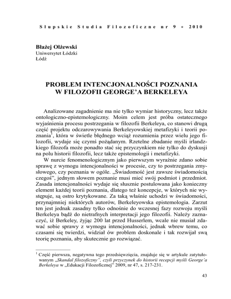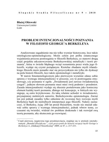 problem intencjonalności poznania w filozofii george`a berkeleya