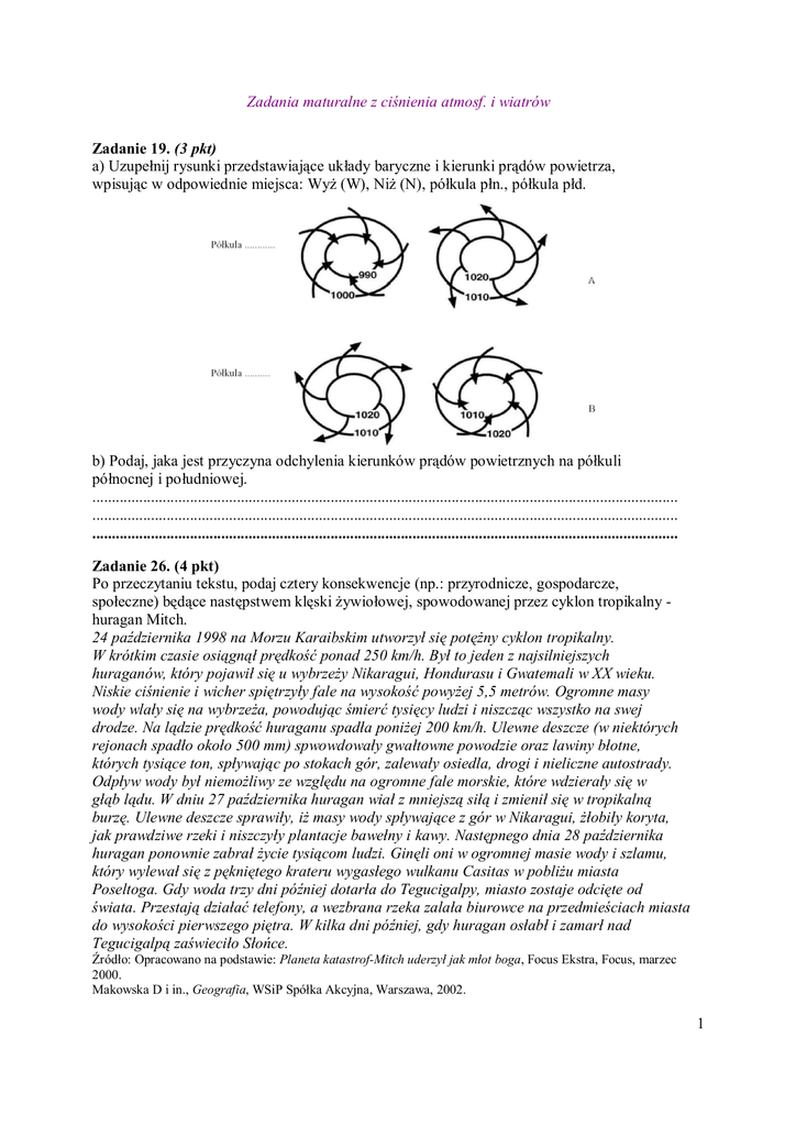 Zadania maturalne z ciśnienia atmosf. i wiatrów 1