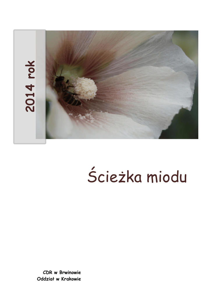 2014 rok Ścieżka miodu CDR w Brwinowie Oddział w Krakowie „ŚCIEŻKA MIODU” Ścieżka miodu Centrum Doradztwa Rolniczego w Brwinowie Oddział w Krakowie 2014 rok 1 „ŚCIEŻKA MIODU” „Ścieżka miodu” Opracowanie: Edyta Klimowska-Bobula, Centrum Doradztwa Rolniczego w Brwinowie, Oddział w Krakowie Konsultacja naukowa: Danuta i Henryk Kamaszukowie, Godzięcin, właściciele pasieki i zagrody edukacyjnej 2 „ŚCIEŻKA MIODU” Spis treści Wstęp ........................................................................................ 5 Od nektaru… do pierników .......................................... 6 Pierniki ........................................................................ 7 Miód ......................................................................... 9 Nektar .............................................................. 15 Kto produkuje miód? ................................................... 18 Funkcjonowanie rodziny pszczelej .............................. 27 Ule i pasieki ............................................................... 31 Pszczelarz ................................................................. 34 3 „ŚCIEŻKA MIODU” Miód w żywieniu człowieka ................................... 38 Inne produkty pszczele ............................................. 40 Wymieranie pszczół ....................................................... 43 Bibliografia .............................................................................. 44 4 „ŚCIEŻKA MIODU” Wstęp Niniejszy przewodnik zawiera treści opracowane dla Ogólnopolskiej Sieci Zagród Edukacyjnych na podstawie materiałów przygotowanych przez szwajcarską sieć zagród edukacyjnych SCHuB. Na początku zawiera schemat, który przedstawia pochodzenie żywności („Od nektaru… do pierników”), następnie przepis kulinarny (pierniki). Kolejne rozdziały zawierają już konkretne treści. W każdym z rozdziałów znajdziecie zadania do wykonania. Można je rozwiązywać samodzielnie, z grupą kolegów, nauczycielami bądź rodzicami. Mamy nadzieję, że podążanie ścieżką miodu i odkrywanie świata przyrody sprawi Wam mnóstwo frajdy i dostarczy nowych wrażeń! 5 „ŚCIEŻKA MIODU” Od nektaru… do pierników pierniki sklepy przemysł cukierniczy miód pasieka pszczoły nektar 1 1 Ryc. z materiałów szwajcarskich SCHuB 6 „ŚCIEŻKA MIODU” Pierniki Pierniki to rodzaj ciastek, w których najważniejszymi składnikami jest miód. Produkty te znane są w całej Europie choć przygotowywane według różnych przepisów. Przepis na pierniczki (z materiałów szwajcarskich) Składniki: 250 gramów miodu 80 g masła 125 g cukru 1 jajko 1 łyżeczka cynamonu 550 g mąki 1/2 łyżeczki proszku do pieczenia szczypta soli szczypta gałki muszkatołowej szczypta goździków Na wolnym ogniu stopić miód, masło i cukier, cały czas mieszając. Zdjąć z ognia i ostudzić. Do wystudzonej masy wbić jajko, dodać przyprawy i sól i dokładnie wymieszać. Dodać 500 g, przesianej i wymieszanej z proszkiem do pieczenia mąki, wymieszać. Przełożyć ciasto na stolnicę wysypaną pozostałą mąką i dobrze wyrobić. Gotowe ciasto rozwałkować na wysokość ok. 1 cm i wycinać ciasteczka o dowolnych kształtach. Ułożyć na wysmarowanej tłuszczem blasze i piec przez ok. 8-12 min. w temperaturze 180 stopni (czas pieczenia zależy od wielkości ciasteczek). Wystudzone pierniczki można polać czekoladą lub lukrem i ozdobić migdałami lub gotową kolorową posypką. 7 „ŚCIEŻKA MIODU” Spróbuj … Odróżnić i nazwać przyprawy używane w przepisie oraz opisać ich zapach i właściwości. Przygotowywać pierniki o różnych kształtach i rozmiarach (wycinanie za pomocą foremek oraz formując kształty ręcznie, bez użycia foremek). Przygotowywać pierniki z różnym przeznaczeniem: jako ozdoba na choinkę, jako figurka do teatrzyku (piernikowy teatrzyk) itp. Wykonaj test na smak pierników i porównywaj go ze smakiem innych ciastek. Utwórz książkę z przepisami wykorzystującymi miód. Powiedz, w jakiej baśni występuje chatka Zaprojektuj piernikową chatkę. 8 z piernika? „ŚCIEŻKA MIODU” Miód Miód jest naturalną, słodką substancją wytwarzaną przez pszczoły z nektaru kwiatów i spadzi. Pszczoły produkują różne rodzaje miodu w zależności od regionu, w którym żyją i roślin, do których mają dostęp. Miód może być płynny lub skrystalizowany. Dobry miód (oprócz akacjowego i spadziowego) powinien ulegać krystalizacji w ciągu 3-4 miesięcy, ale jeśli jest przechowywany w temperaturze poniżej 15 °C, proces ten zachodzi szybciej. Miód płynny nazywamy patoką a skrystalizowany krupcem. Aby rozpuścić skrystalizowany miód, słoik można zanurzyć w ciepłej wodzie lub umieścić w nagrzanym piekarniku o temperaturze nie wyższej niż 40 °C, gdyż w wyższej traci swoje właściwości.2 Miody dzielimy na: nektarowe – uzyskiwane z nektaru kwiatów, spadziowe – uzyskiwane z wydzielin mszyc żerujących na drzewach iglastych i liściastych. Jeśli miód jest zrobiony w przeważającej części z nektaru jednej rośliny - mamy do czynienia z miodem odmianowym. Jeśli w czasie kwitnienia roślin pszczoły przynoszą do ula również spadź, mówimy o miodzie mieszanym nektarowo-spadziowym. Niektóre typy miodów nektarowych na świecie: eukaliptusowy (Australia) – dość ciemny, ziarnisty, aromatyczny; tymiankowy (Grecja) – w kolorze ciemnego bursztynu, o wyrazistym smaku dzikich ziół z lekko gorzkim posmakiem; lawendowy (Francja) – jasnożółty, drobnoziarnisty, o delikatnym smaku; 2 Przyjmuje się, że zupełna utrata właściwości miodu następuje przy temp. ok. 60 °C 9 „ŚCIEŻKA MIODU” z alpejskich ziół i kwiatów z przewagą niezapominajki (region alpejski) – jasnożółty, o smaku alpejskich kwiatów; słonecznikowy (kraje Płd. Europy, Chiny) – jasny, kremowy kolor, bardzo słodki; kasztanowy (kraje Płd. E