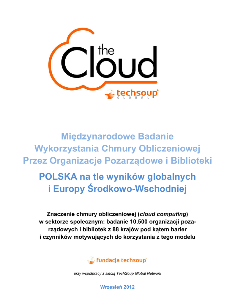 Skróconą wersję wyników badania przedstawiamy w “Podsumowaniu raportu międzynarodowego”2, natomiast z pełnym opracowaniem wyników można zapoznać się w anglojęzycznej publikacji "The Significance of Cloud Computing for the Social Benefit Sector". Wersja pełna i skrócona raportu analizują wyniki badania w kontekście globalnym i regionalnym, nie w odniesieniu