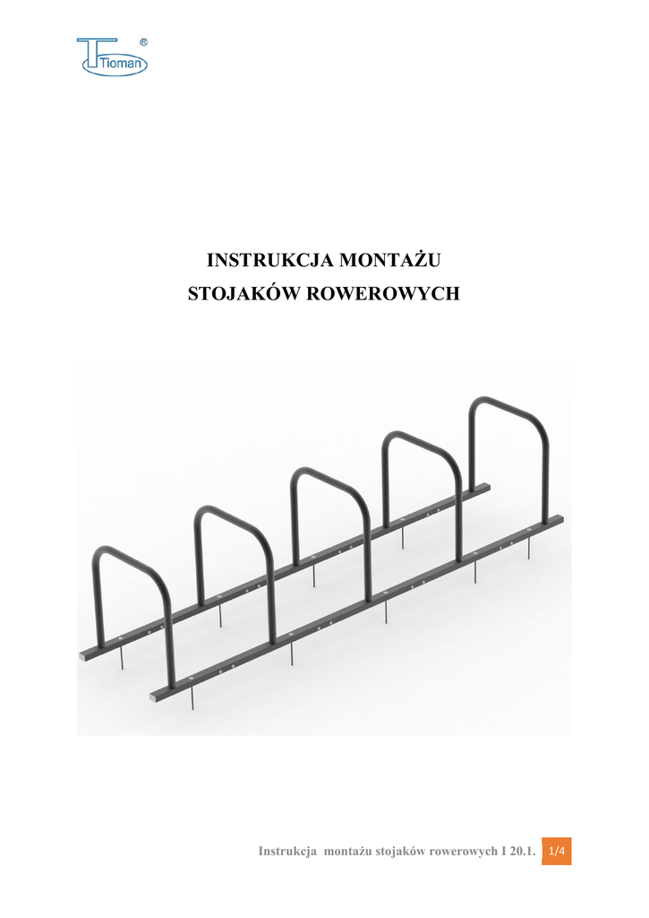 INSTRUKCJA MONTAŻU STOJAKÓW ROWEROWYCH Instrukcja montażu stojaków rowerowych I 20.1. 1/4 1. Przedmiot instrukcji Przedmiotem niniejszej instrukcji montażu stojaków rowerowych są wymagania dotyczące wykonania i odbioru robót związanych z posadowieniem stojaków rowerowych. 2. Zakres zastosowania Instrukcja montażu stojaków rowerowych jest dokumentem wskazującym wytyczne do przeprowadzenia i odbioru robót budowlanych związanych z instalacją stojaków rowerowych. 3. Rodzaje stojaków rowerowych Stojaki rowerowe opisują następujące parametry: - wysokość [mm], - długość (rozstaw nóg montażowych) [mm], - wymiary nóg [mm], - długość elementu kotwiącego [mm], - materiał: stal ocynkowana ogniowo lub stal nierdzewna. 4. Sposoby mocowania Wyróżniamy dwa sposoby mocowań stojaków rowerowych do podłoża za pomocą: - kotew prostopadłych do podłoża, - betonowania bezpośrednio w gruncie. Mocowanie stojaków do podłoża za pomocą kotew prostopadłych do podłoża: Instrukcja montażu stojaków rowerowych I 20.1. 2/4 Dla tego rodzaju mocowania zaproponowano przykładową kotwę Hilti HSL-3 M8. Pozostałe wytyczne posadowienia wg katalogu producenta. Niniejsza instrukcja tyczy się podłoża litego tzn. betonowego, asfaltowego lub wykonanych szklanek betonowych. Mocowanie stojaków do podłoża za pomocą betonowania bezpośrednio w gruncie: Uwaga: głębokość posadowienia równa głębokości przemarzania gruntu. Beton powinien mieć wytrzymałość określoną klasą w dokumentacji projektowej, lecz nie niższą niż klasa C 16/20, lub zgodnie z obowiązującymi wymaganiami. Minimalne wymiary fundamentu to 200mm x 200mm x 600mm. Noga stojaka wpuszczona w fundament na głębokość 500mm. Element kotwiący winien być wyposażony w wąsy uniemożliwiające wyrwanie stojaka. 5. Transport Stojaki rowerowe przewozić środkami transportu, w warunkach zabezpieczających je przed uszkodzeniami mechanicznymi. W przypadku załadowania na środek transportu więcej niż jednej partii stojaków należy je zabezpieczyć przed przemieszczaniem. Przy transporcie przedmiotów ocynkowanych zaleca się ostrożność, ze względu na podatność powłok na uszkodzenia mechaniczne występujące przy uderzeniach. Łączniki, śruby, wkręty, nakrętki itp. powinno się przewozić w warunkach zabezpieczających wyroby przed korozją i uszkodzeniami mechanicznymi. W przypadku stosowania do transportu palet, opakowania powinny być zabezpieczone przed przemieszczaniem się, np. za pomocą taśmy stalowej lub plastikowej lub folii termokurczliwej. Instrukcja montażu stojaków rowerowych I 20.1. 3/4 6. Wytyczne montażowe Miejsce postojowe dla rowerów powinno być usytuowane możliwie jak najbliżej wejścia do budynku, nie dalej niż 25m. Do stoków należy zapewnić wygodny dostęp z kierunku możliwego dojazdu rowerzystów. Może to być związane np. z koniecznością niwelacji krawężników. W przypadku umieszczenia stojaków rowerowych z linii zatoki postojowej dla samochodów, należy ustawić je pod kątem ok. 45 st. do osi jezdni (w orientacji ułatwiającej wjazd z jezdni), aby rower o długości ok. 2m nie wystawał poza obrys miejsc postojowych dla samochodów. Miejsce parkingowe należy osłonić i zabezpieczyć elementami bezpieczeństwa ruchu drogowego w taki sposób, aby manewrujące samochody nie uszkodziły rowerów. Powstałe zabezpieczenie stwarzać powinno jednocześnie łatwy dostęp do stojaków od strony jezdni. 7. Kontrola W czasie instalacji stojaka rowerowego należy zbadać: - zgodność wykonania stojaka z dokumentacją projektową (lokalizacja wymiary), - zachowanie dopuszczalnych odchyłek wymiarów, - prawidłowość wykonania otworów pod kotwy, - poprawność wykonania fundamentów pod nogi stojaka, - poprawność montażu kotew w gruncie, - poprawność ustawienia nóg słupków, - poprawność wykonania stojaków jako gotowego elementu małej architektury. W przypadku montażu wykonanego nie zgodnie z powyższą instrukcją producent nie ponosi odpowiedzialności za powstałe szkody, a reklamacje nie będą uwzględniane. Instrukcja montażu stojaków rowerowych I 20.1. 4/4