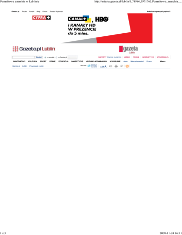 Pomnikowa anarchia w Lublinie 1z3 Gazeta.pl Poczta Randki http://miasta.gazeta.pl/lublin/1,78966,5971765,Pomnikowa_anarchia_... Blogi Forum Szukaj WIADOMOŚCI Gazeta.pl Lublin KULTURA SPORT Przystanek Lublin Gazeta Wyborcza w serwisie OPINIE Seksizm w pracy się opłaca? RAPORTY Internet za darmo w Gazeta.pl EDUKACJA INWESTYCJE KRONIKA KRYMINALNA REKLAMA A W LUBLINIE WIDEO Auto FORUM NEWSLETTER Nieruchomości Praca WYBORCZA.PL Miasta AA 2008-11-24 16:11 Pomnikowa anarchia w Lublinie 2z3 http://miasta.gazeta.pl/lublin/1,78966,5971765,Pomnikowa_anarchia_... Pomnikowa anarchia w Lublinie Małgorzata Domagała 2008-11-20, ostatnia aktualizacja 2008-11-20 18:18 Niektóre są brzydkie, a innym, jak Matce Sybiraczce po prostu zabrakło szczęścia. Wymieniamy pomniki, których Lublin powinien się wstydzić najbardziej W oparach absurdu... Zad jelenia Jesienne spaghetti z leśnymi grzybami Dziś "Gazeta: w całej Polsce pisze o szkaradnych pomnikach, które zalewają miasta. Kilka takich znajdziemy teŜ i u nas. O pomoc w ich wskazaniu poprosiliśmy Kazimierza OŜoga, historyka sztuki, autora strony internetowej poświęconej lubelskim monumentom. - Lublin mieści się w przeciętnej krajowej. Mamy kilka pomników wybitnych, część przeciętnych i nieco knotów. Do tych pierwszych naleŜy zaliczyć monumenty upamiętniające ofiary Majdanka, eksterminację śydów i wreszcie "Homagium" z dziedzińca KUL - twierdzi. NAJCZĘŚCIEJ CZYTANE LUBLIN 24 h | tydzień 1. śyciński: „Gazeta Polska” jak „Nie” Urbana 2. Siedem osób zginęło na śliskich drogach 3. Muzycy filharmonii przeciwko Fot. Damian Danak / AG Pomnik ofiar Katynia przed kościołem garnizonowym Lubelskim ulicom czy skwerom niejedno moŜna zarzucić. ChociaŜby dlatego, Ŝe jak podkreśla OŜóg, stoją na nich monumenty tanie i tandetne. - Myślę tu o radosnej twórczości Witolda Marcewicza, który realizuje zamówienia wąskich grup, głównie kombatanckich i tworzy obiekty bardzo słabe artystycznie. Te jego kamienie z podobiznami Kamińskiego czy Dekutowskiego, pomnik Katyński sprzed kościoła garnizonowego są kiczowate. Wielka szkoda, Ŝe cecha ta skazuje owe monumenty na kiepski odbiór społeczny i marginalizuje je - tłumaczy. melomanom 4. Architekci z Europy zaprojektują plac Litewski 5. Nowe domy idą do wyburzenia. Powstaje lotnisko 6. CBA: „Bogdanka” straciła 20 milionów 7. Czarcia Łapa od nowa OFERTY REKLAMY GOOGLE Mieszkanie w Lublinie Największa baza sprawdzonych nieruchomości. Szukamy do skutku! www.HomeBroker.pl Wiemy, co będzie za 6 miesięcy sprawdź Najlepiej zarabiająca lokata 15 % w skali roku sprawdź Sklep Komfort Lublin Wyszukaj najbliŜszy sklep Komfort. Sprawdź ceny i promocje ! Pełna gwarancja kapitału sprawdź KOMFORT.pl DOTNET - Internet Lublin Instalacja łącza w 48 godzin! Internet 512/512 kb/s - 36,60 z VAT www.dotnet.lublin.pl W którym banku dostaniesz 10% na lokacie? sprawdź Dom Maklerski ING Securities. NajniŜsze depozyty sprawdź Jednak problem z pomnikami nie kończy się tylko na ich estetycznej wartości. Wiele z nich oszpeconych jest przez miejsca, w jakich są umieszczone. Właśnie z tego powodu nie zachwyca nas Matka Sybiraczka przy Centrum Kultury autorstwa Zbigniewa Stanucha z 2000 roku. - Stoi w złym miejscu, w kiepskim Z kartą Toyota Bank 1% transakcji wraca do Ciebie sprawdź otoczeniu. Nieszczególny jest teŜ cokół, który współtworzy dzieło. Dobrze, Ŝe przynajmniej figura jest solidna, a nie Ŝywicowa, co się czasem zdarza - broni pomnika OŜóg. Podobnie jego zdaniem na niewłaściwym miejscu stoi Marszałek. - Po pierwsze nie powinien stawać na folii, po wtóre niepotrzebnie zeszpecono go skrupulatnie wypisanymi na cokole sponsorami, wreszcie został ustawiony w złym miejscu. Popsuto nim ostatecznie Plac Litewski. Szkoda. Choć przykład pomnika Wieniawskiego, który przesunięty pod filharmonię zyskał znakomite tło i ekspozycję, daje nadzieję, Ŝe moŜe kiedyś i z Marszałkiem ktoś mądry i odwaŜny zrobi coś, za co kolejne dekady będą mu wdzięczne - mówi OŜóg. Dyskusja nad lokalizacją pomnika Marszałka wróci w przyszłym tygodniu podczas organizowanych warsztatów dotyczących przyszłości placu Litewskiego. Burza wokół monumentu wybuchła w wakacje po przygotowaniu przez konserwatora zabytków wytycznych co do jego zagospodarowania. Chce on, by głównym elementem śródmiejskiego placu był obelisk Unii Lubelskiej, a dla Marszałka moŜna poszukać innego miejsca w Lublinie. Propozycja oburzyła lubelskich Piłsudczyków. Wolelibyśmy ich nie mieć Oprócz wymienionych monumentów, nam nie podoba się pomnik Związków ze Lwowem pod lubelskim zamkiem. Autorem "lwa" równieŜ jest Marcewicz. Do nieudanych realizacji zaliczamy takŜe fontannę autorstwa Tomasza Kawiaka na rogu Narutowicza i Okopowej. Przedstawia ona dŜinsy z kieszenią, z której wystaje herb Lublina. Teraz czekamy na zdjęcia i komentarze czytelników. Chcemy dowiedzieć się jakie Waszym zdaniem pomniki szpecą Lublin. Piszcie na adres: Gazeta Wyborcza Lublin, ul. Krakowskie Przedmieście 21 20-002 Lublin, [email protected]. Źródło: Gazeta Wyborcza Lublin Poleć znajomemu Wydrukuj Podyskutuj na forum 2008-11-24 16:11 Pomnikowa anarchia w Lublinie 3z3 http://miasta.gazeta.pl/lublin/1,78966,5971765,Pomnikowa_anarchia_... Copyright © Agora SA • O nas • StaŜe u nas • Reklama • Prywatność • Wszystkie artykuły Poleć stronę | Zgłoś problem Praca Oferty pracy List motywacyjny CV Praca za granicą 2008-11-24 16:11