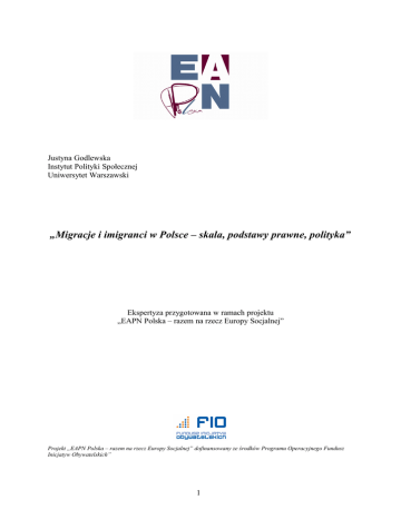 Justyna Godlewska Instytut Polityki Społecznej Uniwersytet Warszawski „Migracje i imigranci w Polsce – skala, podstawy prawne, polityka” Ekspertyza przygotowana w ramach projektu „EAPN Polska – razem na rzecz Europy Socjalnej” Projekt „EAPN Polska – razem na rzecz Europy Socjalnej” dofinansowany ze środków Programu Operacyjnego Fundusz Inicjatyw Obywatelskich” 1 Wprowadzenie Przystępując do analizy sytuacji migracyjnej, już na wstępie należy zauważyć, że Polska pozostaje nadal krajem z przewagą emigracji nad imigracją (określana jest bądź to jako kraj emigracyjny, bądź też emigracyjno-imigracyjny). Jest jednym z niewielu państw w Unii Europejskiej, które wykazują ujemne saldo migracyjne. Główny Urząd Statystyczny 1 szacuje, że w 2008 r. saldo migracji zagranicznych 2 wyniosło (–)14,9 tys. Można uznać te dane za dalece zaniżone, obejmują one bowiem jedynie migracje (wyjazdy mieszkańców zameldowanych na stałe w Polsce) wiążące się z wymeldowaniem z miejsca stałego zamieszkania i nieuwzględniajace ruchu migracyjnego o charakterze czasowym, który stanowi zdecydowana większość przepływów migracyjnych 3. Sytuacja migracyjna w Polsce wpływa na stosunkowo niewielkie zainteresowanie problemami imigrantów, natomiast najczęściej podejmowanym w debacie publicznej i badaniach naukowych tematem o konotacjach migracyjnych są zagraniczne wyjazdy zarobkowe Polaków, rozpatrywane przede wszystkim z punktu widzenia konsekwencji dla państwa wysyłającego (sytuacja na rynku pracy, potencjalny drenaż mózgów), w mniejszym stopniu zaś w odniesieniu do sytuacji adaptacyjno-integracyjnej obywateli polskich w państwach przyjmujących. 1. Migracje z Polski Bardzo trudno dokładnie określić liczebność wyjeżdżających. Jedynie niewielka część wyjazdów jest rejestrowana. Dotyczy to przede wszystkim tych, którzy emigrują na pobyt stały. Według danych GUS4, w 2008 r. wyemigrowało na pobyt stały 30 140 mieszkańców Polski (46% emigrujących stanowiły kobiety), najwięcej do Niemiec (11 884), Wielkiej Brytanii (6 565) i Stanów Zjednoczonych (3 158). Większość wyjazdów zagranicznych stanowią jednak migracje zarobkowe do krajów Unii Europejskiej, które ze względu na zasadę swobodnego przepływu osób, najczęściej nie znajdują swojego odbicia w statystykach. Szacunki Ośrodka Badań nad Migracjami5 wskazują, że migracje (wyjazdy) poakcesyjne (po 1 Rocznik Demograficzny 2009, Główny Urząd Statystyczny, http://www.stat.gov.pl/cps/rde/xbcr/gus/PUBL_rocznik_demograficzny_2009.pdf 2 Saldo dotyczy tylko migracji na stałe wiążących się z zameldowaniem bądź wymeldowaniem z miejsca zamieszkania. 3 Warto w tym miejscu zauważyć, że współczesne migracje (głównie zarobkowe) charakteryzują się coraz większą płynnością i coraz trudniej wpasowują się w tradycyjnie przyjęte podziały na migracje długo- i krótkookresowe. 4 Rocznik Demograficzny 2009, Główny Urząd Statystyczny, op. cit., s. 434. 5 M. Okólski, Nowe uwarunkowania, nowe migracje? Współczesne migracje Polaków a rynek pracy [w:] P. Kaczmarczyk, M. Okólski (red.) Polityka migracyjna jako instrument promocji zatrudnienia i ograniczania bezrobocia, Ośrodek Badań nad Migracjami WNE UW, Warszawa 2008, s. 22, http://www.migracje.uw.edu.pl/download/publikacja/191/ 2 1 maja 2004 r.) objęły (do 1I 2007 r.) ok. 1 milion 100 tysięcy osób, natomiast Główny Urząd Statystyczny ocenił, że na dzień 1 stycznia 2007 r. 1 milion 950 tysięcy stałych mieszkańców Polski przebywało ponad 2 miesiące zagranicą6. Zdaniem prof. M. Okólskiego dane GUS należy traktować, jako „dolną granicę przedziału, w którym mieści się faktyczna liczba osób [migrantów]”7. W okresie przed przystąpieniem Polski do Wspólnoty, trzema najważniejszymi krajami emigracji były dla Polaków: Niemcy, Stany Zjednoczone i Włochy. Otwarcie rynków pracy przez niektóre państwa członkowskie UE po przyjęciu 8 nowych państw, spowodowało, że na pierwsze miejsce wśród krajów docelowych wysunęły się Wielka Brytania i Irlandia (przy utrzymaniu wysokiego poziomu migracji do Niemiec i Włoch), a ponadto Polacy stali się grupami dominującymi wśród migrantów w Norwegii, Niderlandach i Islandii8. Jak już wspomniano, głównym motywem wyjazdów zagranicznych Polaków jest możliwość podjęcia lepiej płatnej pracy (w coraz mniejszym stopniu zaś brak jakiejkolwiek możliwej do podjęcia pracy) i co za tym idzie oczekiwanie lepszej sytuacji ekonomicznej. Zwraca się jednak uwagę na fakt, że w obecnej sytuacji gospodarczej w Europie (umocnienie złotego względem funta brytyjskiego i euro) obserwuje się spadek siły nabywczej zarobków osiąganych zagranicą, co powoduje, że coraz trudniej „dorobić się” w trakcie wyjazdu zarobkowego i musi on też trwać dłużej, aby przynieść zakładane przez migranta korzyści9. Czynnikami wypychającymi w odniesieniu do migracji poakacesyjnych mieszkańców Polski są obecnie przede wszystkim: − brak możliwości znalezienia na polskim rynku pracy zatrudnienia dającego satysfakcję materialną, a w odniesieniu do wielu młodych ludzi także zapewniającego możliwości rozwoju; − trudności w procesie przejścia ze szkoły (wyższej uczelni) do pierwszej pracy (trudna sytuacja absolwenta na rynku pracy). Analizując strukturę wyjeżdżających, należy podkreślić, że migrują głównie osoby młode (w dużej części bez zobowiązań rodzinnych) o zróżnicowanym poziomie wykształcenia, niemniej wyjazdy poakcesyjne charakteryzują się zwiększonym udziałem osób ze stosunkowo wysokim poziomem wykształcenia i lepszą znajomością języków obcych. 6 Ibidem. Ibidem. 8 M. Okólski, Polska jako aktor na europejskiej scenie migracyjnej [w:] M. Duszczyk, M. Lesińska (red.) Współczesne migracje: dylematy Europy i Polski, Warszawa: Ośrodek Badań nad Migracjami, 2009. 9 R. Jończy, Nowa po
