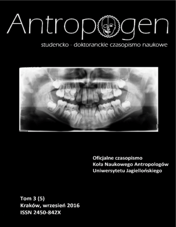 Koło Naukowe Antropologów Uniwersytetu Jagiellońskiego w Krakowie Tom 3 (5)/2016 Kraków, 2016 Redaktor naczelna Marta Barszcz Grono redakcyjne Karolina Dereń Anna Jaguszewska Patrycja Kierlik Monika Łabędzka Monika Prus Aleksandra Smędzik Recenzenci Dr hab. Magdalena Gryzińska, Uniwersytet Przyrodniczy, Lublin Dr Łukasz Skalniak, Uniwersytet Jagielloński, Kraków Dr hab. Iwona Wronka, Uniwersytet Jagielloński, Kraków Dr hab. Ewa Zuba- Surma, prof. UJ, Uniwersytet Jagielloński, Kraków Zdjęcie na okładce Archiwum własne; osobnik z wymianą uzębienia Skład i łamanie Marta Niedzicka Czasopismo wydawane w formie elektronicznej www.antropogen.edu.pl www.facebook.com/AntropogenUJ Drodzy czytelnicy, Numer V czasopisma Antropogen wychodzi dokładnie rok od pojawienia się pierwszego wydania. Cieszymy się, że jesteście z nami cały ten czas oraz, że Antropogen cieszy się coraz większym zainteresowaniem. Przez ten rok zmieniliśmy „kategorię” na czasopismo studencko-doktoranckie oraz uzyskaliśmy numer ISSN. Co przyniesie kolejny rok – też jesteśmy ciekawi. Mamy wielką nadzieję, że będziecie nam towarzyszyć przez kolejny rok. W tym numerze każdy znajdzie coś dla siebie. W skali „mikro” zapoznamy się z analizą mtDna. W skali „makro” omówione zostaną choroby zębów, tkanka tłuszczowa i budowa małżowiny usznej. Przyjrzymy się również mukowiscydozie oraz komórkom macierzystym. Autorzy wyjaśnią nam biologiczne i środowiskowe uwarunkowania wieku menarche oraz wpływ czynników społeczno-ekonomicznych na rozwój biologiczny człowieka. Marta Barszcz redaktor naczelna oraz Patrycja Kierlik media społecznościowe i promocja Spis treści Aleksandra Baryła Morfologia małżowiny usznej 6 Małgorzata Dylewska Zastosowanie analizy mitochondrialnego DNA w antropologii fizycznej 10 Katarzyna Kliś, Kamil Mrożek, Katarzyna Zaleska Wpływ czynników społeczno-ekonomicznych na rozwój biologiczny człowieka 13 Andrzej Kubiak, Natalia Bryniarska Wybrane zastosowania mezenchymalnych komórek macierzystych w leczeniu chorób układu nerwowego człowieka 18 Agnieszka Mulawa Biologiczne i środowiskowe uwarunkowania wieku menarche 23 Aleksandra Pokusa, Marta Barszcz Wady uzębienia 29 Katarzyna Sitarz Mukowiscydoza - trochę teorii 33 Aleksandra Smędzik Budowa i rola tkanki tłuszczowej 37 Aleksandra Baryła Zakład Antropologii Uniwersytet Jagielloński Adres korespondencyjny: agata.barył[email protected] Morfologia małżowiny usznej Narząd przedsionkowo-ślimakowy (organon vestibul-cochleare), potocznie zwany uchem, w organizmie każdego człowieka spełnia dwojaką funkcję: odbieranie fal dźwiękowych i informowanie o położeniu ciała w przestrzeni, stąd też jego druga nazwa – narząd równowagi i słuchu (organon stato-acusticus) [1]. Częścią ucha odpowiedzialną za przyjmowanie i przewodzenie fal dźwiękowych jest ucho zewnętrzne (auris externa), w którego skład wchodzi małżowina uszna (auricula) oraz przewód słuchowy zewnętrzny (meatus acusticus externus). Część najbardziej zewnętrzna – małżowina uszna, odpowiada za odbieranie fal dźwiękowych, a przewód słuchowy za ich dalsze przewodzenie [2]. Budowa małżowiny usznej Małżowina uszna charakteryzuje się bardzo bogatą rzeźbą, która jest wynikiem dużej ilości elementów składających się na jej budowę [3]. Szkielet głównej części małżowiny stanowi chrząstka sprężysta zwana chrząstką małżowiny (cartilago auriculae), która u dołu przechodzi w chrząstkę przewodu słuchowego (cartilago meatus acustici). Bierze ona udział w tworzeniu skrawka małżowiny (tragus auriculae) [1]. Jedyną częścią małżowiny, której rusztowania nie tworzy chrząstka jest płatek uszny (lobulus auriculae) wypełniony tkanką tłuszczową. Grubość chrząstki małżowiny na ogół wynosi 2 mm, jednak może się wahać w przedziale od 0,9 do 2,8 mm. Jest to głównie chrząstka sprężysta, czasami przechodząca w włóknistą. Wytrzymałość i giętkość chrząstki zależy od ochrzęstnej zawierającej liczne włókna sprężyste [2]. Skóra pokrywająca małżowinę uszną jest cieńsza niż skóra otoczenia, co umożliwia prawie dokładne odtworzenie kształtu chrząstki przez ścisłe przyleganie do niej. Tylko niektóre fragmenty budowy rusztowania widoczne są dopiero po od preparowaniu skóry [2]. W części dolnej skóra wykracza poza granice chrząstki i tworzy powłokę dla płatka. Na powierzchni przyśrodkowej skóra łączy się z chrząstką warstwą wiotkiej tkanki łącznej, bogatej we włókna sprężyste dzięki czemu jest ona przesuwalna. Na powierzchni bocznej wiotka tkanka łączna prawie całkowicie pozbawiona jest tłuszczu, co skutkuje ścisłym przyleganiem skóry do chrząstki małżowiny. U człowieka owłosienie małżowiny jest skąpe, głównie występuje tylko drobny meszek (lanugo) wokół otworu słuchowego. Z wiekiem mogą pojawić się grube pojedyncze włoski, zlokalizowane na skrawku, przeciwskrawku, na grzbietowym brzegu małżowiny i płatku [1]. Ważną cechą wykorzystywaną w kryminalistyce przy pobieraniu śladów jest występowanie gruczołów łojowych na skórze małżowiny, głównie w okolicach muszli (concha auriculae) oraz dołu trójkątnego (fossa triangularis), dzięki wydzielinie łojowej przy kontakcie małżowiny usznej z różnymi przedmiotami powstaje ślad z rodzaju śladów tłuszczowych [4]. W skład małżowiny usznej wchodzą również więzadła i kilka zanikowych mięśni. Więzadła, tak samo jak i mięśnie, dzielimy na dwie grupy. Więzadła zewnętrzne przytwierdzają małżowinę do kości skroniowej, a wewnętrzne spajają ze sobą różne części chrząstki małżowiny usznej. Grupa mięśni większych stanowi rodzaj rozwieracza z powodu promienistego ułożenia wokół otworu słuchowego, natomiast grupa mięśni mniejszych tworzy właściwe mięśnie ucha [2]. Małżowina uszna po