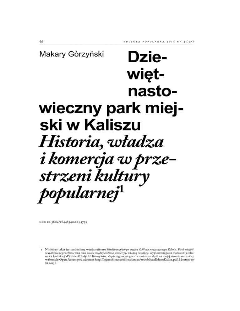 1 Niniejszy tekst jest zmienioną wersją referatu konferencyjnego autora Oblicza nowoczesnego Edenu. Park miejski