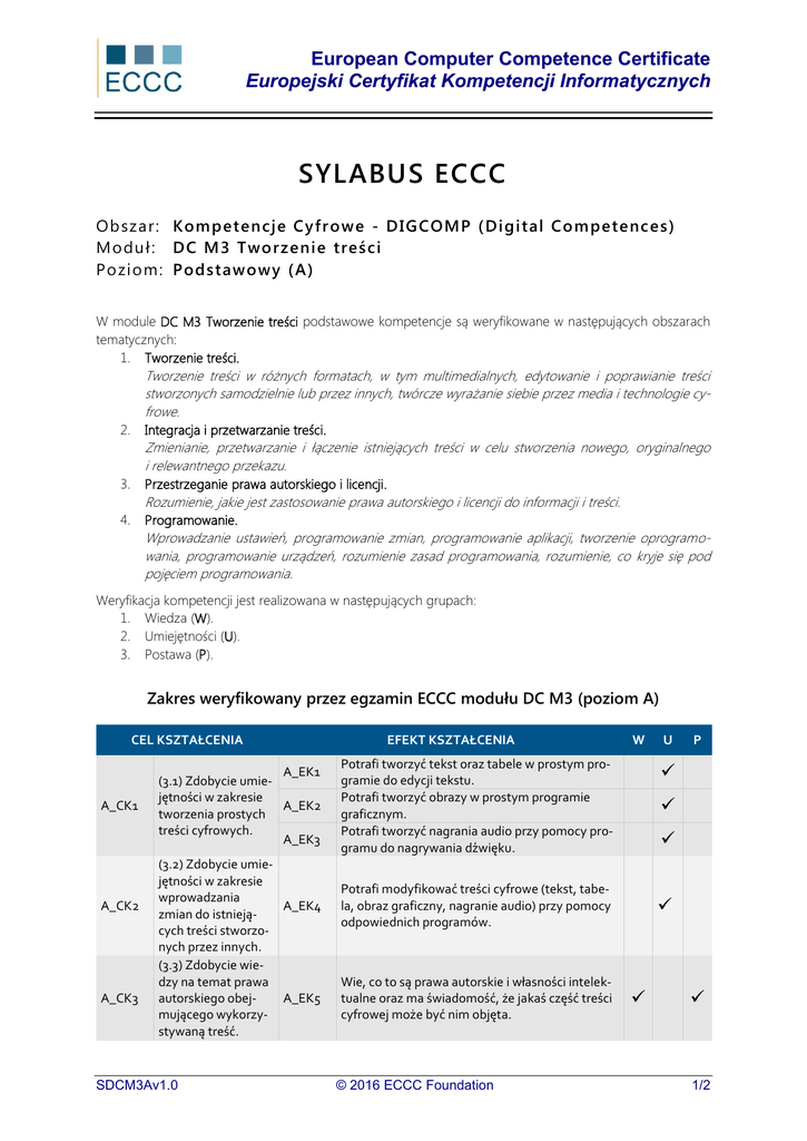 Sylabus ECCC - DC M3 Tworzenie treści (A)