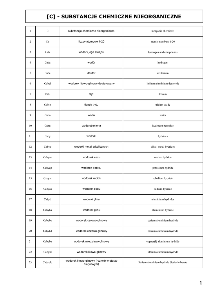 [C] - SUBSTANCJE CHEMICZNE NIEORGANICZNE 1