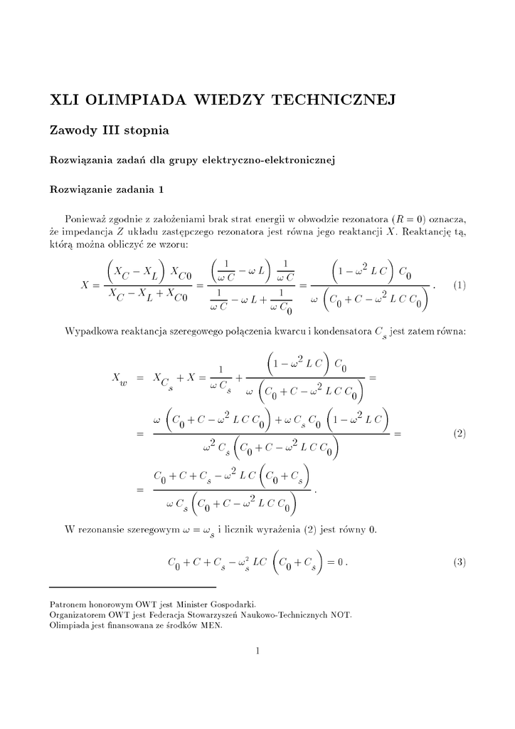 XLI OLIMPIADA WIEDZY TECHNICZNEJ