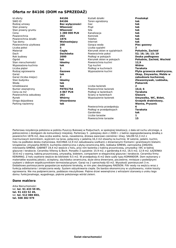 Oferta nr 84106 (DOM na SPRZEDAŻ)