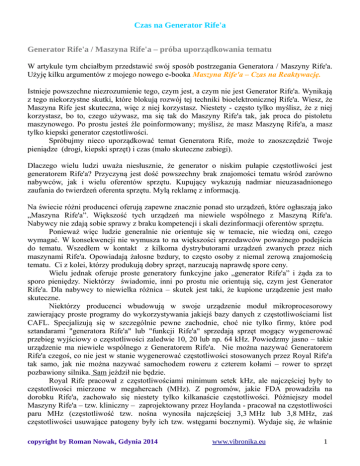 możliwościach zasługują moim zdaniem na nazwę Maszyny Rife'a i dla wprowadzeniu