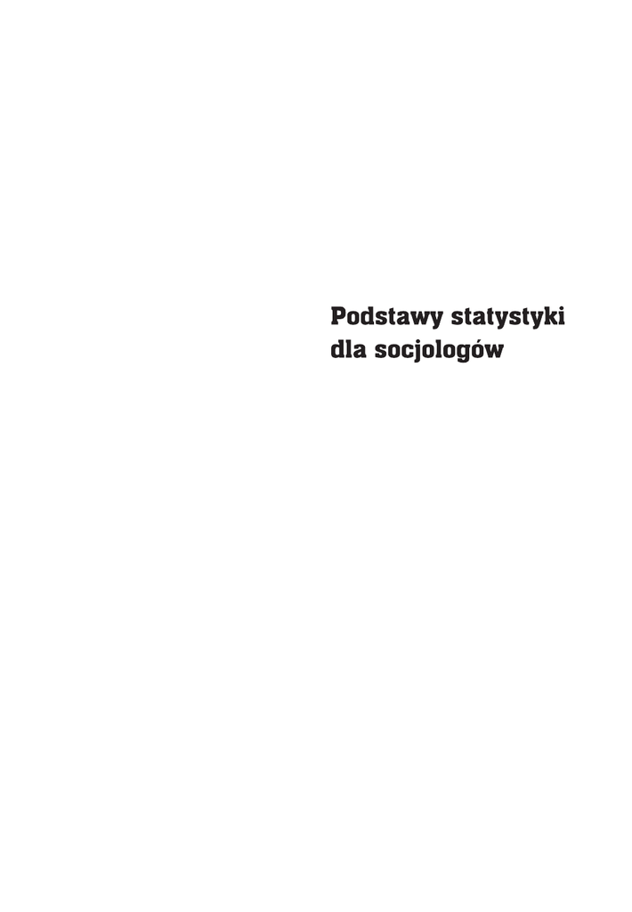 Recenzenci: prof. dr hab. Henryk Domański dr hab. Jarosław Górniak Redakcja i korekta Bogdan Baran Projekt graficzny okładki Katarzyna Juras © Copyright by Wydawnictwo Naukowe Scholar, Warszawa 2011 ISBN 978-83-7383-564-1 (t. 1) ISBN 978-83-7383-563-4 (całość) Wydanie drugie, poprawione Wydawnictwo Naukowe Scholar sp. z o.o. ul. Krakowskie Przedmieście 62, 00-322 Warszawa tel./fax 22 828 93 91; 22 828 95 63; 22 826 59 21 dział handlowy: jak wyżej wew. 105, 108 e-mail: [email protected]; [email protected] www.scholar.com.pl Skład i łamanie: WN Scholar (Stanisław Beczek) Druk i oprawa: Wrocławska Drukarnia Naukowa PAN Spis rozdziałów Tom pierwszy. Opis statystyczny Przedmowa . . . . . . . . . . . . . . . . . . . . . . . . . . . . . . . . . . . 17 Część I. Wprowadzenie Rozdział 1. Struktura badania statystycznego . . . . . . . . . . . . . . . . . 21 Rozdział 2. Rozkłady statystyczne . . . . . . . . . . . . . . . . . . . . . . . 51 Część II. Opis rozkładu statystycznego jednej zmiennej Rozdział 3. Parametry poziomu wartości . . . . . . . . . . . . . . . . . . . . 79 Rozdział 4. Parametry rozproszenia . . . . . . . . . . . . . . . . . . . . . . . 117 Rozdział 5. Błędy opisu a interpretacja parametrów rozkładu jednej zmiennej . 157 Rozdział 6. Agregacja i dekompozycja parametrów rozkładu jednej zmiennej . 175 Rozdział 7. Inne parametry rozkładu jednej zmiennej . . . . . . . . . . . . . . 199 Indeks . . . . . . . . . . . . . . . . . . . . . . . . . . . . . . . . . . . . . . 211 Tom drugi. Zależności statystyczne Część III. Zależności statystyczne między dwiema zmiennymi Rozdział 8. Własności rozkładu łącznego i funkcje dwóch zmiennych . . . . . 13 Rozdział 9. Regresje pierwszego rodzaju i związane z nimi zależności statystyczne . . . . . . . . . . . . . . . . . . . . . . . . . . . . 33 Rozdział 10. Regresja drugiego rodzaju liniowa i skorelowanie liniowe . . . . . 61 Rozdział 11. Korelacja rangowa . . . . . . . . . . . . . . . . . . . . . . . . . 101 Rozdział 12. Zależność stochastyczna . . . . . . . . . . . . . . . . . . . . . 121 Rozdział 13. Kierunek zależności statystycznej . . . . . . . . . . . . . . . . . 135 Część IV. Zależności statystyczne między wieloma zmiennymi Rozdział 14. Regresja i korelacja wielokrotna liniowa . . . . . . . . . . . . . . 147 Rozdział 15. Korelacja cząstkowa . . . . . . . . . . . . . . . . . . . . . . . . 199 6 Rozdział 16. Dalsze problemy regresji i korelacji wielokrotnej liniowej . . . . . 215 Rozdział 17. Metody wielowymiarowej analizy statystycznej . . . . . . . . . . 235 Literatura . . . . . . . . . . . . . . . . . . . . . . . . . . . . . . . . . . . . 250 Indeks . . . . . . . . . . . . . . . . . . . . . . . . . . . . . . . . . . . . . . 253 Tom trzeci. Wnioskowanie statystyczne Część V. Podstawy wnioskowania statystycznego Rozdział 18. Podstawy rachunku prawdopodobieństwa . . . . . . . . . . . . 13 Rozdział 19. Rozkłady zmiennych losowych i twierdzenia graniczne . . . . . . 41 Rozdział 20. Populacja i prosta próba losowa . . . . . . . . . . . . . . . . . . 67 Rozdział 21. Schematy doboru prób losowych . . . . . . . . . . . . . . . . . 85 Część VI. Wnioskowanie statystyczne Rozdział 22. Estymacja punktowa i przedziałowa . . . . . . . . . . . . . . . . 113 Rozdział 23. Podstawy weryfikacji hipotez statystycznych . . . . . . . . . . . 143 Rozdział 24. Weryfikacja hipotez parametrycznych . . . . . . . . . . . . . . . 167 Rozdział 25. Weryfikacja hipotez nieparametrycznych . . . . . . . . . . . . . 199 Tablice . . . . . . . . . . . . . . . . . . . . . . . . . . . . . . . . . . . . . . 217 Indeks . . . . . . . . . . . . . . . . . . . . . . . . . . . . . . . . . . . . . . 223 Spis treści Tom pierwszy. Opis statystyczny Przedmowa . . . . . . . . . . . . . . . . . . . . . . . . . . . . . . . . . . . 17 Do drugiego wydania podręcznika . . . . . . . . . . . . . . . . . . . . . . 18 Część I. Wprowadzenie Rozdział 1. Struktura badania statystycznego . . . . . . . . . . . . . . . . . 1.1. Przedmiot badania statystycznego . . . . . . . . . . . . . . . . . . . . . 1.2. Zakres badania statystycznego . . . . . . . . . . . . . . . . . . . . . . 1.2.1*. Pomiar . . . . . . . . . . . . . . . . . . . . . . . . . . . . . . . 1.2.2. Skale pomiarowe . . . . . . . . . . . . . . . . . . . . . . . . . . 1.3. Cel badania statystycznego . . . . . . . . . . . . . . . . . . . . . . . . 1.4. Struktura badania statystycznego . . . . . . . . . . . . . . . . . . . . . 1.4.1. Sekwencyjna struktura badania statystycznego . . . . . . . . . . 1.4.2. Formalna struktura badania statystycznego . . . . . . . . . . . . 1.4.3. Opis statystyczny i wnioskowanie statystyczne . . . . . . . . . . . 1.5. Klasyfikacja badań statystycznych . . . . . . . . . . . . . . . . . . . . . 1.5.1. Badania przekrojowe i badania dynamiczne . . . . . . . . . . . . 1.5.2. Badania eksperymentalne . . . . . . . . . . . . . . . . . . . . . Podstawowe pojęcia. Zadania. Literatura . . . . . . . . . . . . . . . . . . . . 21 23 25 26 33 38 42 42 44 45 47 47 47 48 Rozdział 2. Rozkłady statystyczne . . . . . . . . . . . . . . . . . . . . . . . 51 2.1. Macierz danych . . . . . . . . . . . . . . . . . . . . . . . . . . . . . . . 51 2.2. Rozkład jednej zmiennej . . . . . . . . . . . . . . . . . . . . . . . . . . 53 2.2.1. Liczebności, częstości i podstawowe typy rozkładu jednej zmiennej 53 2.2.2. Graficzna prezentacja rozkładu jednej zmiennej . . . . . . . . . . 56 2.2.3. Większość i mniejszość stochastyczna . . . . . . . . . . . . . . . 58 2.3. Rozkłady wielu zmiennych . . . . . . . . . . . . . . . . . . . . . . . . . 61 2.3.1. Rozkłady łączne dwóch zmiennych . . . . . . . . . . . . . . . . . 61 2.3.2. Rozkład łączny wielu zmiennych . . . . . . . . . . . . . . . . . . 62 2.3.3. Graficzna prezentacja rozkładu łącznego dwóch zmiennych . . . . 63 2.3.4. Rozkłady warunkowe . . . . . . . . . . . . . . . . . . .