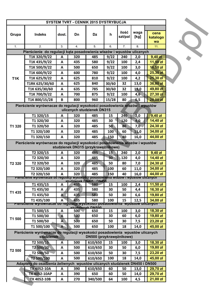 SYSTEM TVRT - CENNIK 2015 DYSTRYBUCJA Grupa Indeks dost