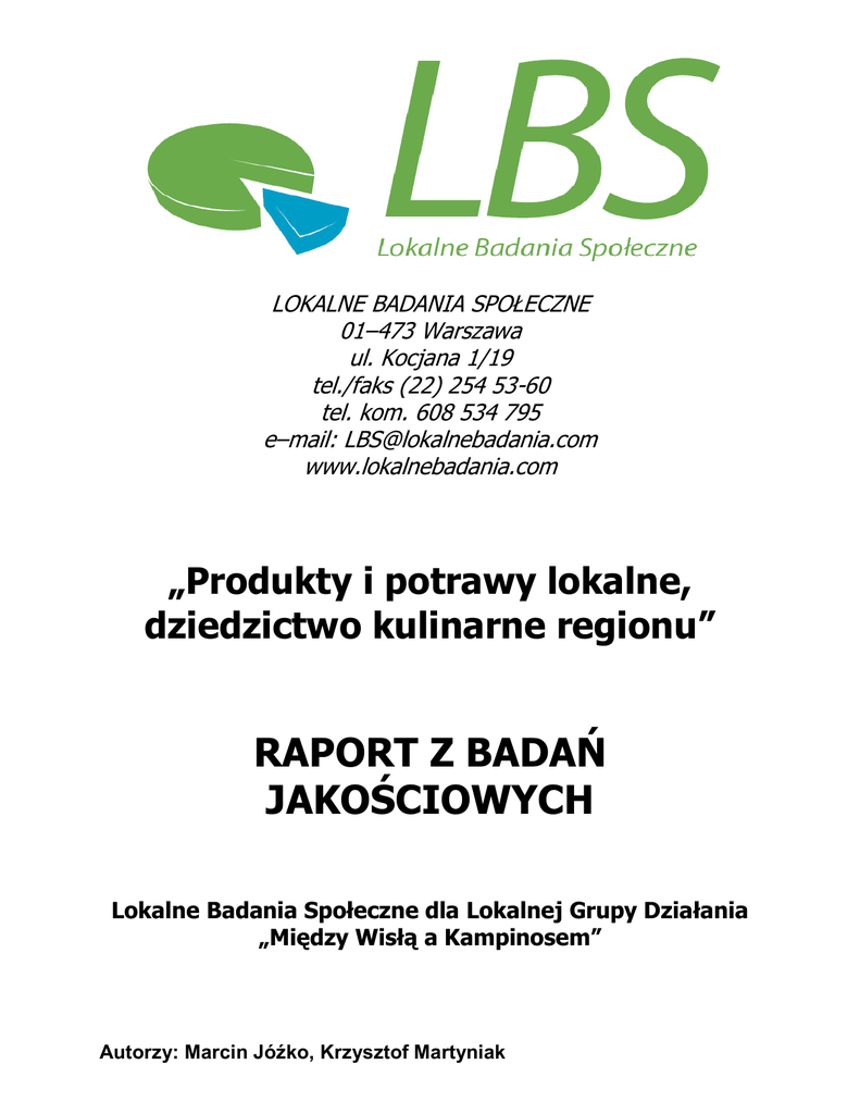 LOKALNE BADANIA SPOŁECZNE 01–473 Warszawa ul. Kocjana 1/19 tel./faks (22) 254 53-60 tel. kom. 608 534 795 e–mail: [email protected] www.lokalnebadania.com „Produkty i potrawy lokalne, dziedzictwo kulinarne regionu” RAPORT Z BADAŃ JAKOŚCIOWYCH Lokalne Badania Społeczne dla Lokalnej Grupy Działania „Między Wisłą a Kampinosem” Autorzy: Marcin Jóźko, Krzysztof Martyniak Spis treści: Wprowadzenie i metodologia (s. 3) Producenci wyrobów kulinarnych (s. 7) Produkty kulinarne na obszarze objętym badaniem (s. 10) Potrawy nawiązujące do regionalnej tradycji (s. 14) Możliwości współpracy z producentami tradycyjnej lub zdrowej żywności (s. 18) Respondenci o swoich gminach (s. 24) Rekomendacje i wnioski (s. 27) Aneks nr 1 – Przepisy kulinarne uzyskane od respondentów podczas badania (s. 30) Aneks 2 – Lokalni wytwórcy żywności, zidentyfikowanej jako potencjalne produkty lokalne (s. 39) Lokalne Badania Społeczne dla Stowarzyszenia „Między Wisłą a Kampinosem” 2 Wprowadzenie i metodologia Firma Lokalne Badania Społeczne przeprowadziła jakościowy cykl badawczy na zlecenie Stowarzyszenia „Między Wisłą a Kampinosem”. Najważniejszym celem była identyfikacja specyficznych produktów kulinarnych, występującym na obszarze działania tej organizacji. Przede wszystkim chodzi tu o tradycyjną lub ekologiczną żywność, w tym produkty regionalne i lokalne. Warto wspomnieć, że – jak wynika z informacji dostępnych na stronie internetowej Ministerstwa Rolnictwa i Rozwoju Wsi - na terenie 10 gmin objętych badaniem nie ma ani jednego zarejestrowanego produktu regionalnego lub tradycyjnego (w całym województwie mazowieckim zarejestrowanych zostało 49 takich produktów). Również dane zamieszczone w publikacji „Smaki Mazowsza”, wydanej przez Urząd Marszałkowski Województwa Mazowieckiego w roku 2010 pokazują, że na obszarze funkcjonowania Stowarzyszenia „Między Wisłą a Kampinosem” nie ma produktów tradycyjnych, zarejestrowanych w Sieci Dziedzictwa Kulinarnego Mazowsza. Podstawowym celem badawczym było zatem ustalenie, czy na terenie objętym badaniami wytwarzane są ciekawe, niszowe wyroby kulinarne, które mają potencjał, aby w przyszłości stać się elementem promocji gminy, powiatu lub regionu. Przyjęta została szeroka definicja poszukiwanych produktów, czy potraw – były to nie tylko wyroby ekologiczne lub nawiązujące do miejscowych tradycji, zdrowa żywność, produkty z tzw. nurtu „slow food”, a także wszelkie niszowe, niestandardowe wyroby kulinarne. Innymi słowy, badania miały posłużyć określeniu lokalnego dziedzictwa i potencjału kulinarnego, a także pokazać warunki i okoliczności, w jakich funkcjonują wytwórcy tego rodzaju żywności. Interesowały nas również optymalne sposoby wspierania tych producentów, potencjalne formy współpracy, a także możliwości wykorzystania wytwarzanych przez nich produktów, czy potraw do celów promocji terytorialnej. Identyfikacja produktów lokalnych i regionalnych na tak specyficznym obszarze byłaby zbyt trudnym zadaniem dla przeciętnego mieszkańca. W związku z tym Lokalne Badania Społeczne dla Stowarzyszenia „Między Wisłą a Kampinosem” 3 odwołaliśmy się zaangażowanych do i opinii lokalnych posiadających ekspertów, niezbędny a zakres więc wiedzy osób na bezpośrednio ten temat. Przeprowadzone badania miały zatem charakter jakościowy, co pozwoliło na uzyskanie pełnych i pogłębionych informacji. Skupiliśmy się na potrawach i innych wytworach kulinarnych, zakładając jednocześnie, że produkt regionalny lub lokalny może przybierać różne formy (np. potrawa, elementy ubioru, wiersz lub piosenka, zabytek architektury ludowej, ciekawostka przyrodnicza, szlak turystyczny itp.). Innymi słowy, dziedzictwo kulinarne analizowane było w szerszym kontekście - konieczne było odwołanie się do kulturalnego i historycznego dziedzictwa badanego obszaru, w tym pewnych elementów lokalnej tożsamości mieszkańców. W ten sposób uzyskaliśmy możliwie pełną informację na temat zasobów badanego obszaru, co pozwoliło na identyfikację produktów, które w przyszłości mogłyby stać się elementem promocji lokalnej lub regionalnej. Obszar objęty badaniem jest dość zróżnicowany. Gminy podwarszawskie (np. Łomianki, Izabelin, Stare Babice) są typowymi sypialniami dużego miasta, w którym przeważa ludność napływowa, zazwyczaj dobrze sytuowana, w małym stopniu identyfikująca się z miejscem zamieszkania. Pozostałe gminy mają charakter rolniczy i w większym stopniu przypominają „typową gminę wiejską”. Nasze badanie musiało zatem uwzględniać to geograficzne zróżnicowanie. W związku z tym wywiady zostały zrealizowane we wszystkich 10 gminach na obszarze funkcjonowania Stowarzyszenia „Między Wisłą a Kampinosem”. Oprócz odwołania się do opinii mieszkańców samych zainteresowanych, a więc wytwórców tradycyjnej lub ekologicznej żywności dodatkowo przeprowadziliśmy wywiad z etnografem, zajmującym się problematyką kultury, sztuki ludowej i folkloru Mazowsza. Jak już wspomnieliśmy, projekt miał charakter jakościowy, zatem zastosowane zostały klasyczne dla tego typu badań metody: Indywidualne Wywiady Pogłębione (IDI) oraz Zogniskowane Wywiady Grupowe (FGI). Dodatkowo wzbogaciliśmy naszą koncepcję o elementy badań etnograficznych: obserwacje prowadzone „w naturalnym Lokalne Badania Społeczne dla Stowarzyszenia „Między Wisłą a Kampinosem” 4 środowisku badanych”, uzyskane zostały materiały zdjęciowe i/lub filmowe, które są załącznikiem do niniejszego raportu. W tym opracowaniu znajduje się opis i interpretacja wyników badań, a także konkretne rekomendacje w zakresie produktów, które – pod pewnymi warunkami mogłyby zostać użyte w działalności promocyjnej. Sformułowane zostały również pewne wskazania w zakresie możliwych sposobów wykorzystania ziden